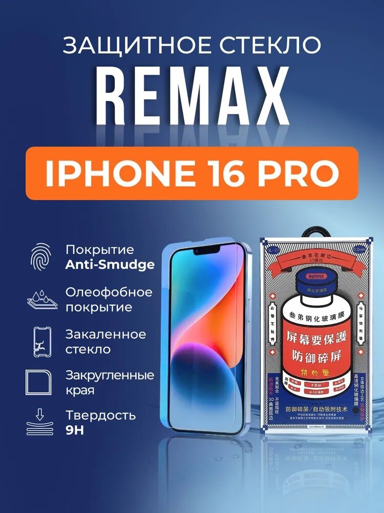 Защитное стекло для iPhone 16 Pro REMAX, усиленное, противоударное стекло на Айфон 16 Про 6.3" интересное: