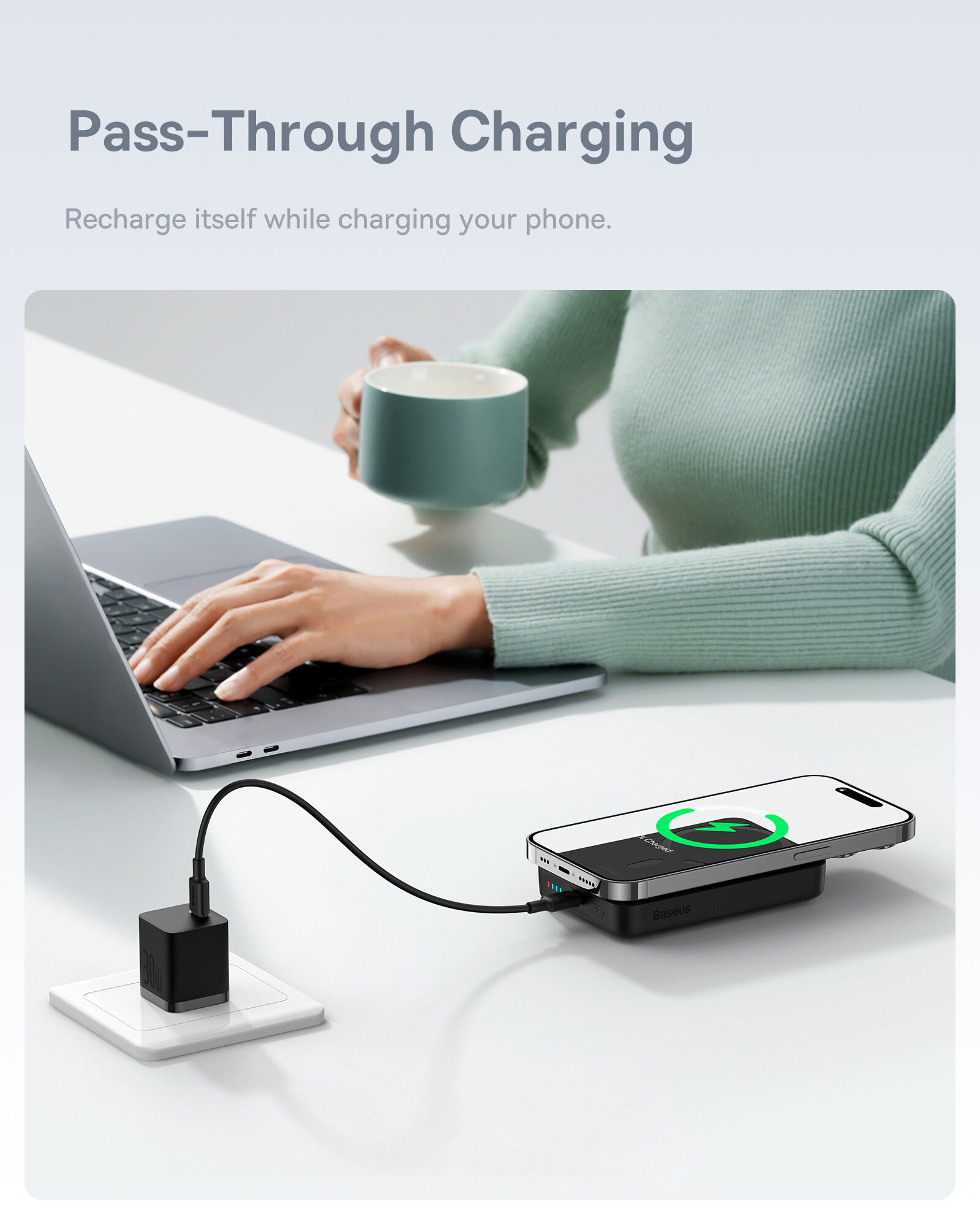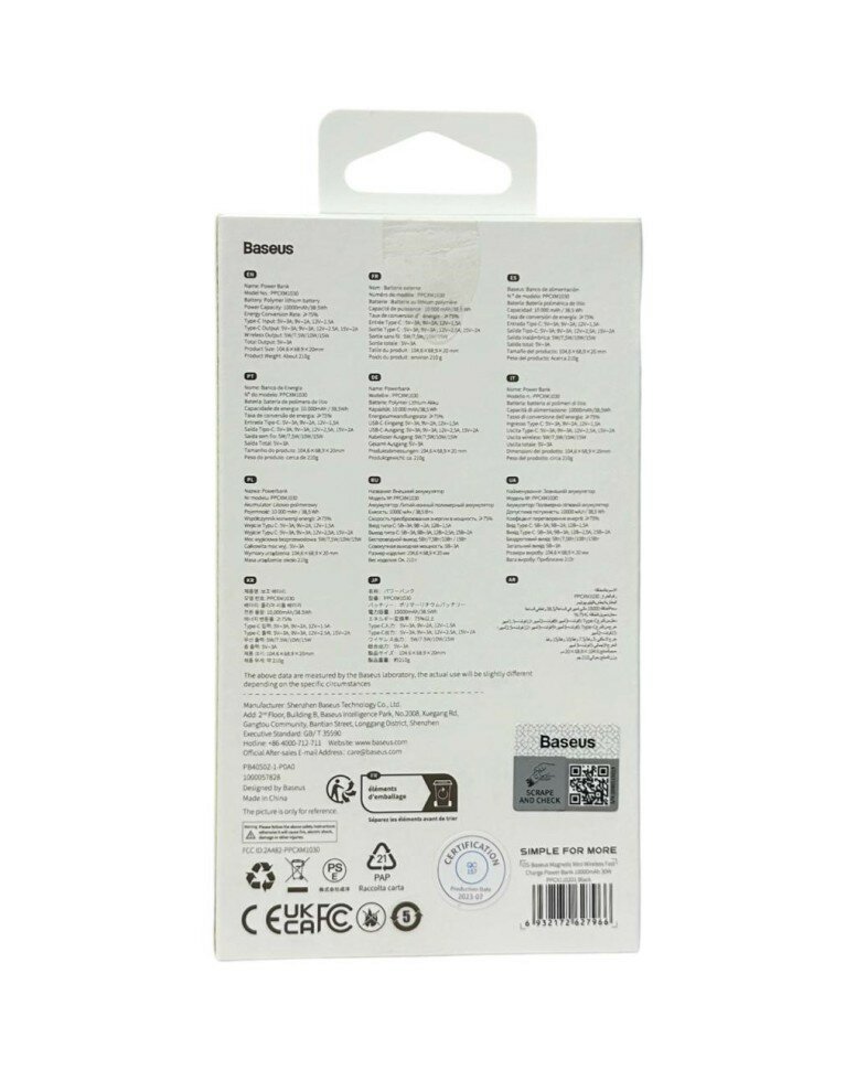 | Комплектация | Внешний аккумулятор OS-Baseus Magnetic Mini Wireless Fast Charge Power Bank 10000mAh 30W с кабелем Type-C to Type-C 30cm (PPCX110201) Черный |