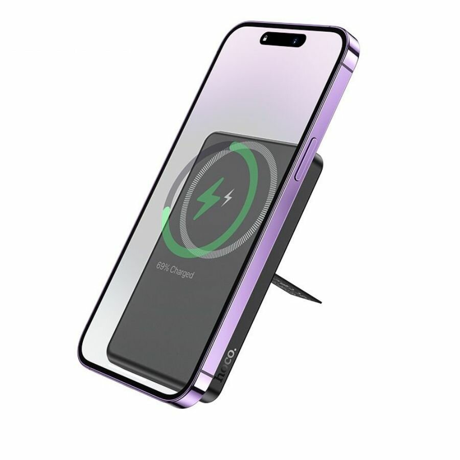Купить Внешний аккумулятор(повербанк) 10000mAh с беспроводной зарядкой HOCO MagSafe J125A 2024. Powerbank Type-C 15W черный