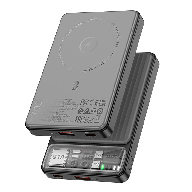 Магнитный аккумулятор с беспроводной зарядкой HOCO Q18 Mini Size, 10000 mAh, 22.5W, черный