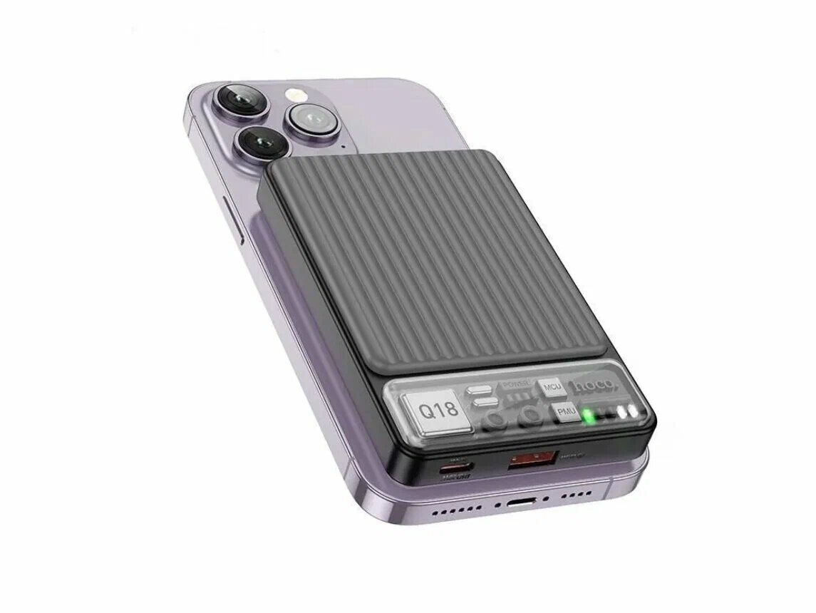 Повербанк (powerbank) 10000mAh QC3.0/PD с беспроводной быстрой зарядкой MagSafe Hoco Q18 для Айфона, USB Type C, цвет черный