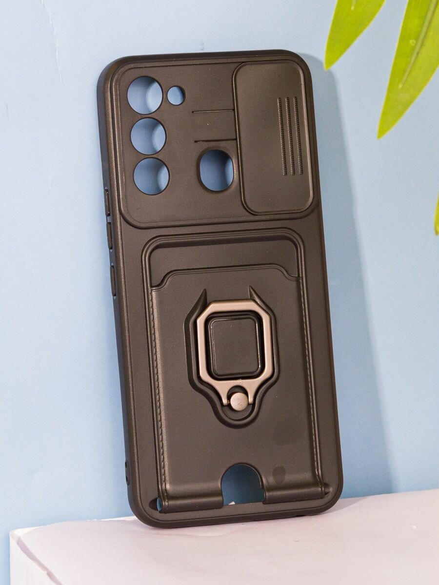 Чехол на Tecno Spark 8C/GO 2022 с картой и магнитом, черный