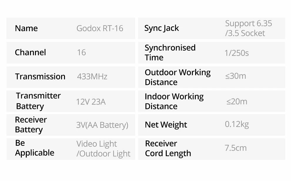 Ниже Вы можете прочитать отзывы на Godox RT-16 триггер для вспышки Canon Nikon Pentax, RT-16, ознакомится с подробными характеристиками, посмотреть интересные обзоры и фотографии на Godox RT-16 триггер для вспышки Canon Nikon Pentax, RT-16.