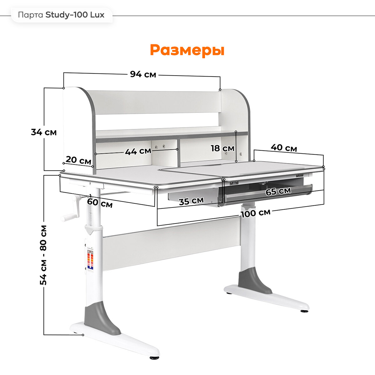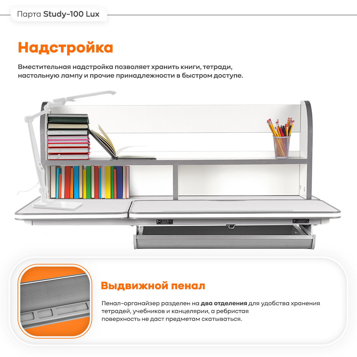 Растущая парта для школьника Rumbik Smart серая, детский деревянный письменный стол с регулировкой высоты