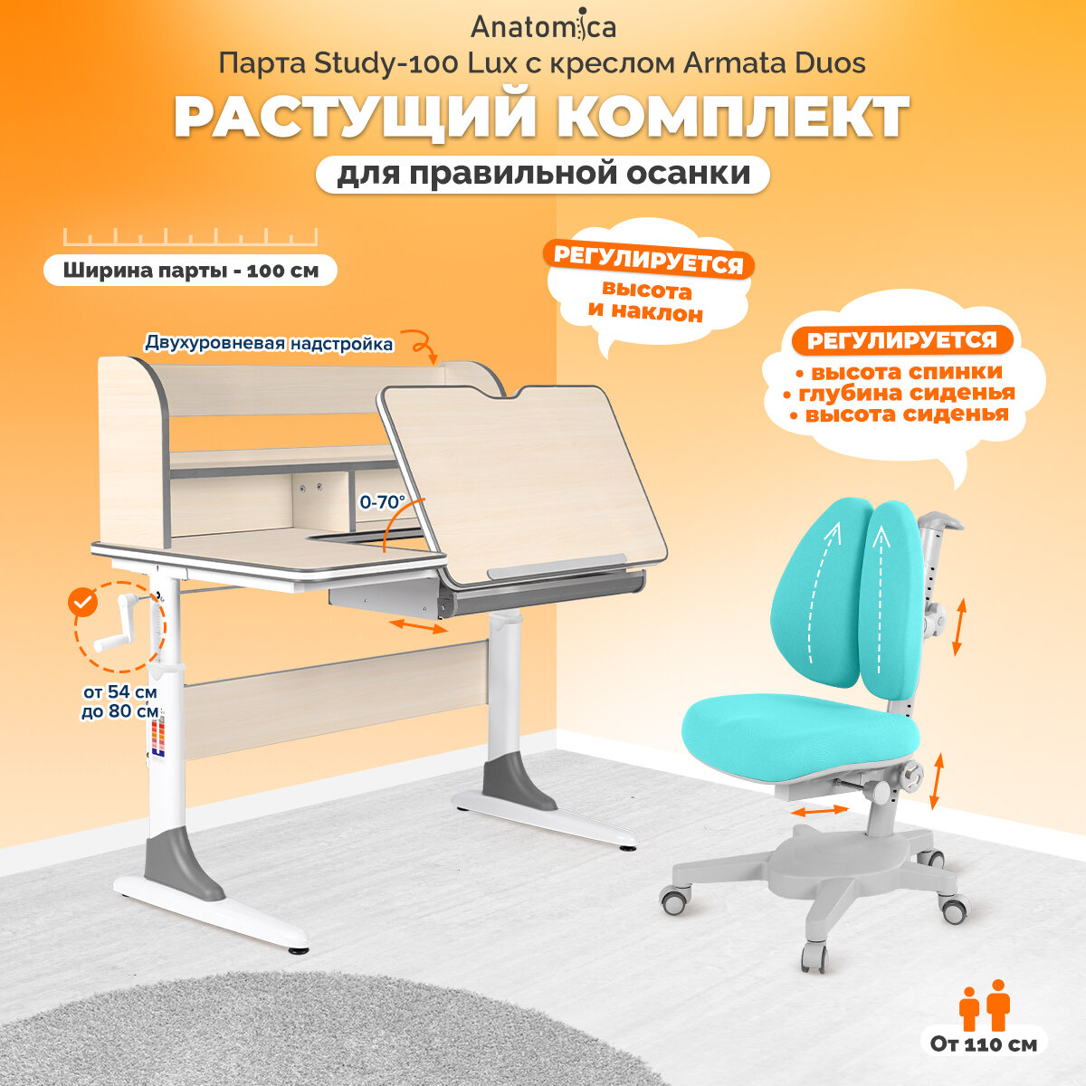 Купить Комплект Anatomica парта + кресло, цвет клен/серый с голубым креслом