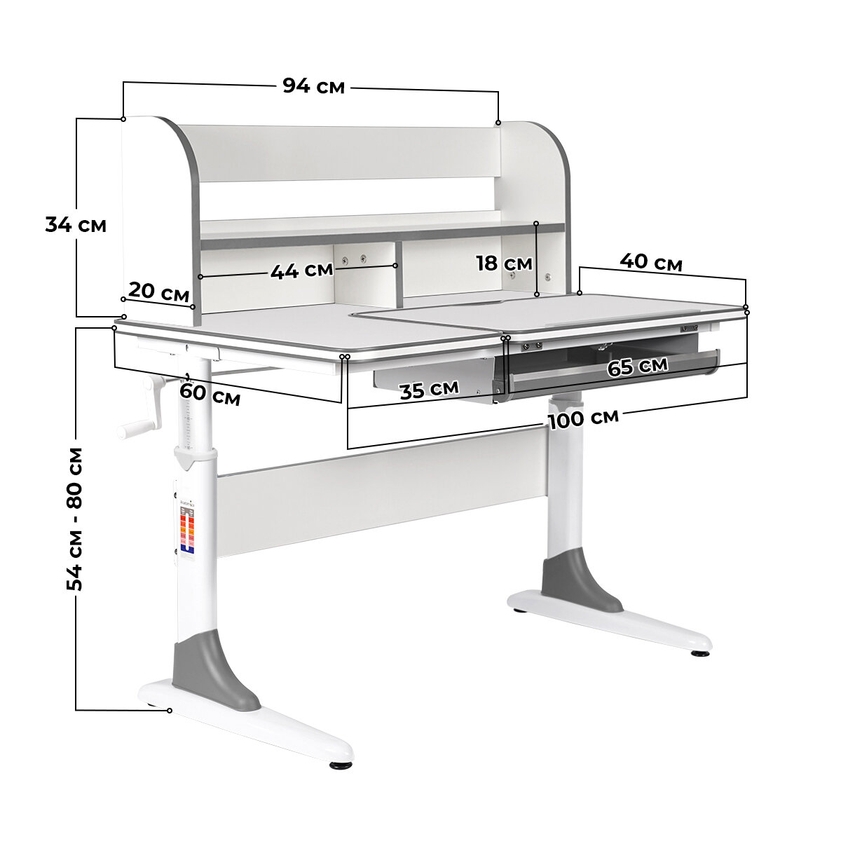 | Особенности | выдвижные ящики, надстройка, регулировка высоты, регулировка угла наклона, с пеналом |