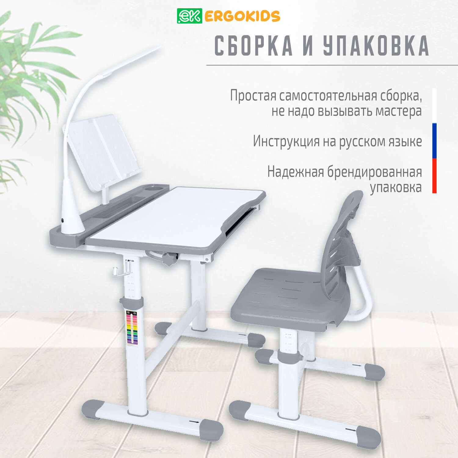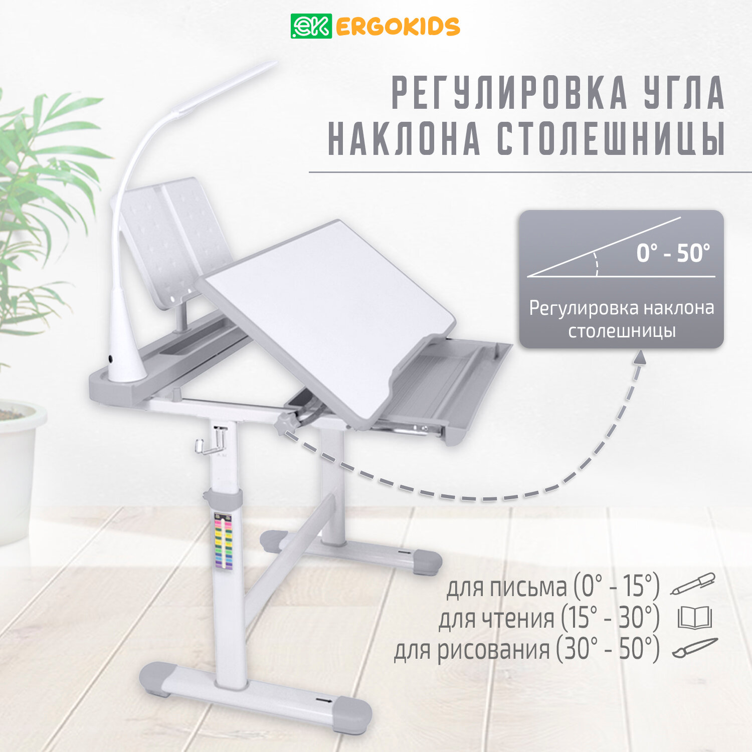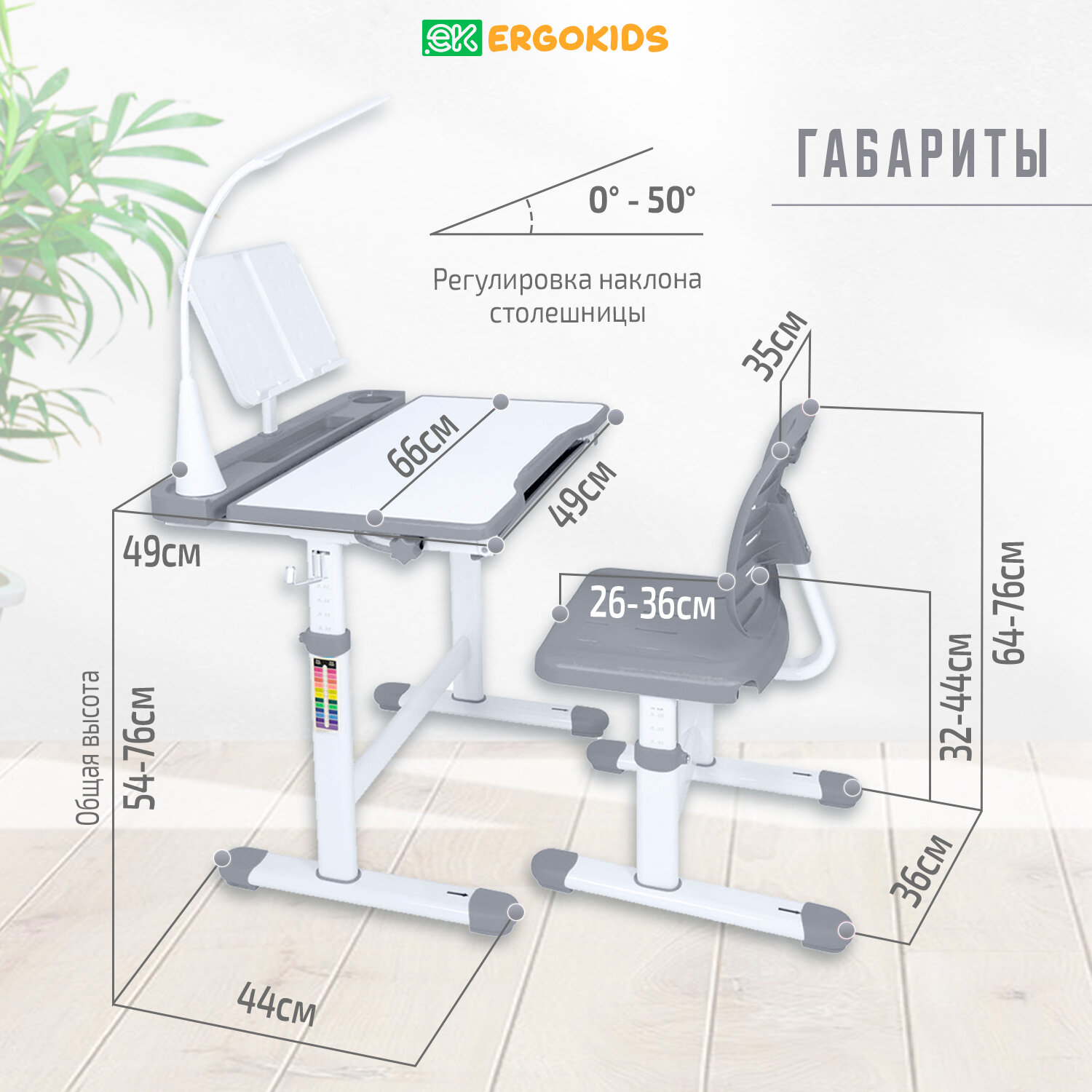 Купить Растущая детская парта стол с лампой (длина столешницы 66 см) и растущий стул EVO-17 G с лампой