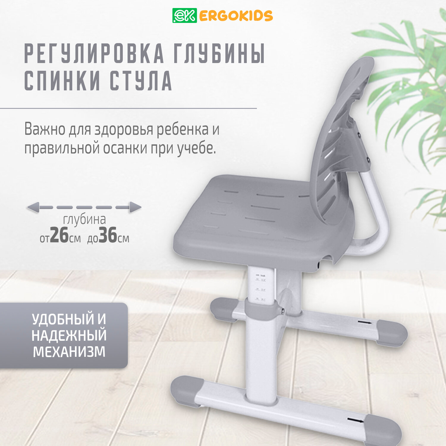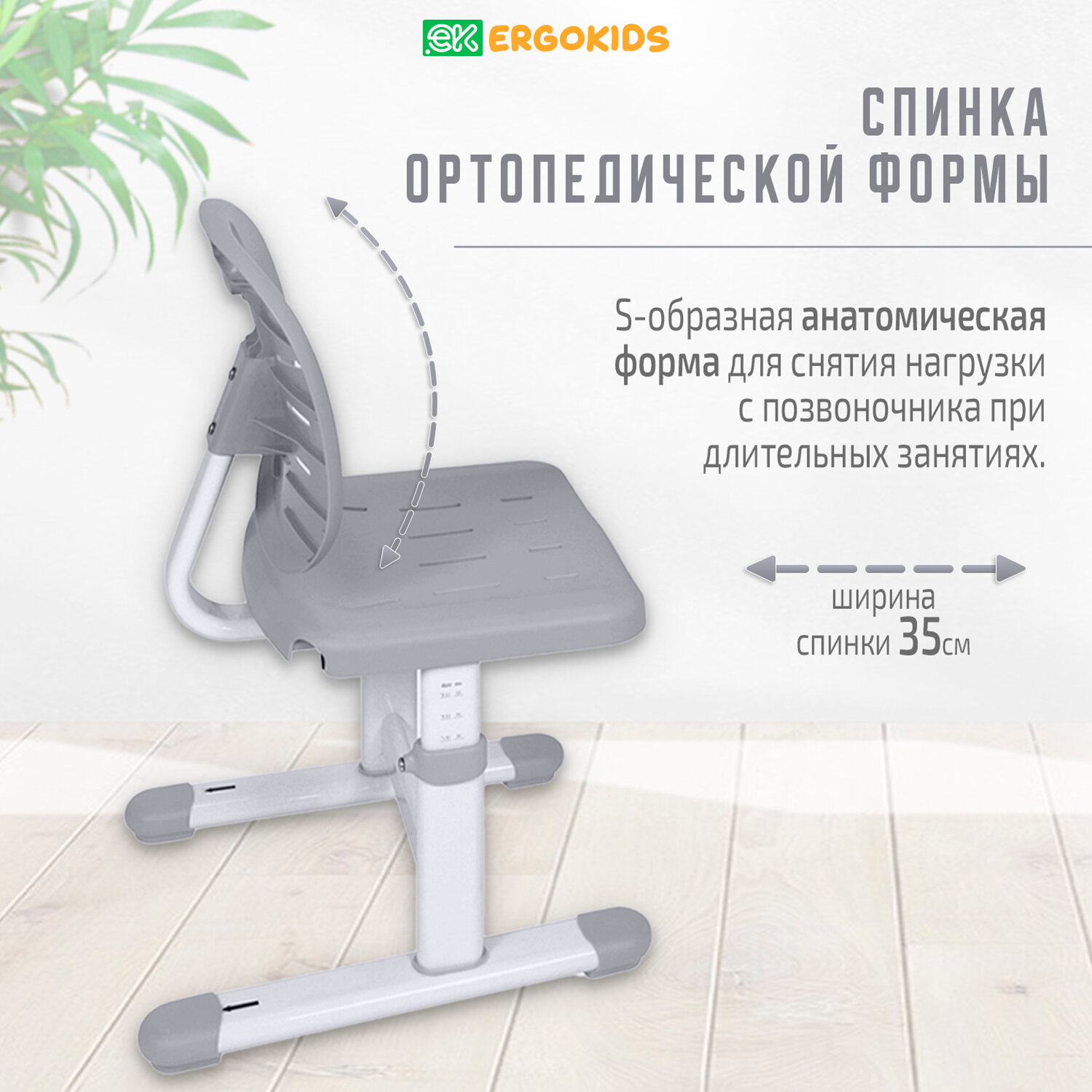 Растущая парта для школьника Rumbik Smart серая, детский деревянный письменный стол с регулировкой высоты