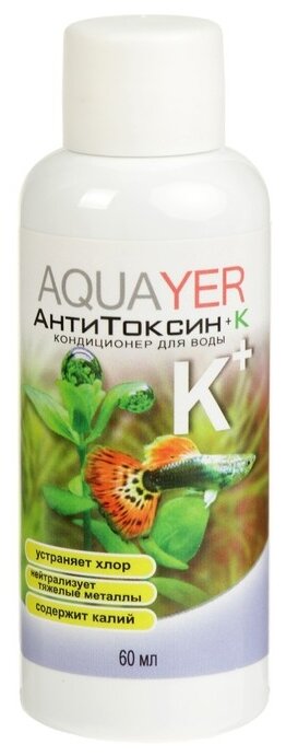AQUAYER АнтиТоксин+К 60 мл, Кондиционер для подготовки воды в растительных аквариумах интересное: