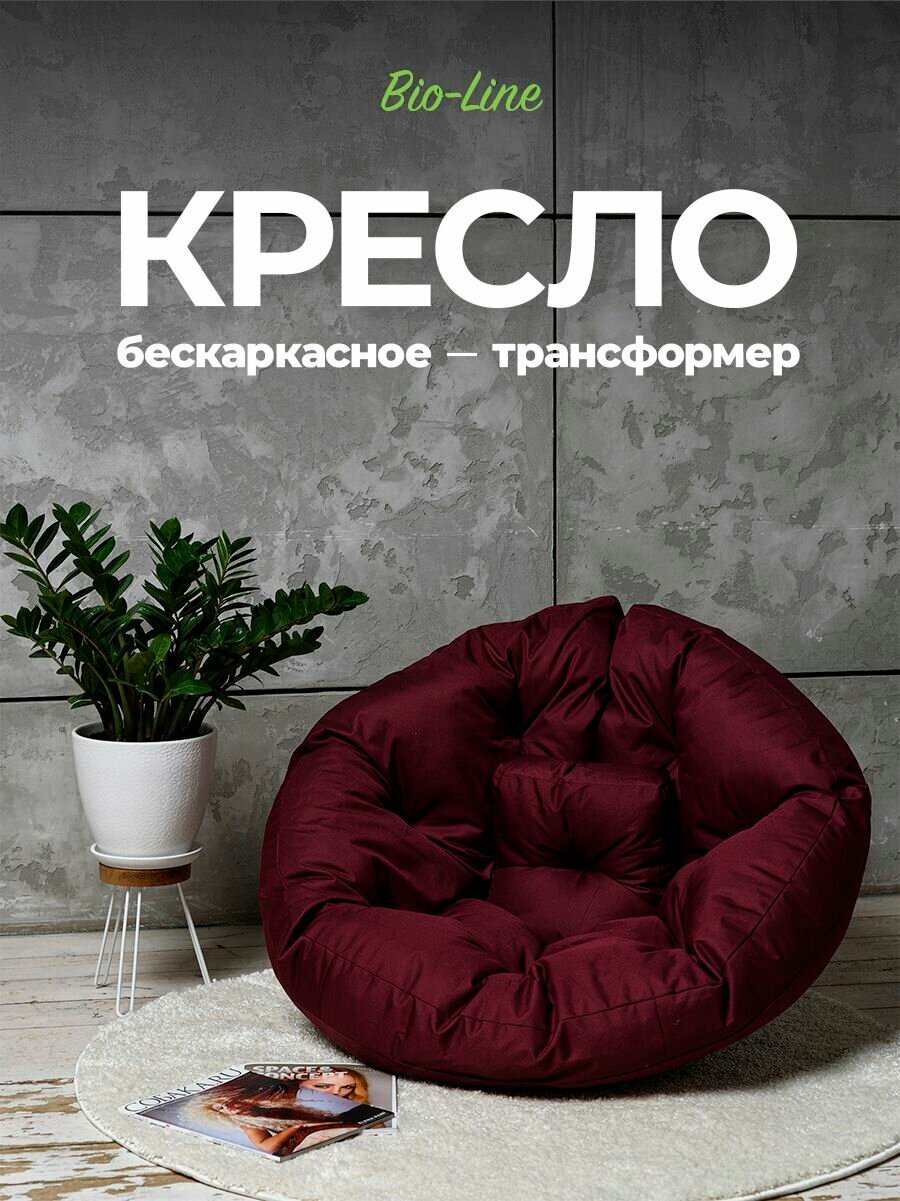 Кресло мешок Bio-Line,бескаркасное кресло трансформер,кресло футон лежак,прочный,водонепроницаемый, бордо