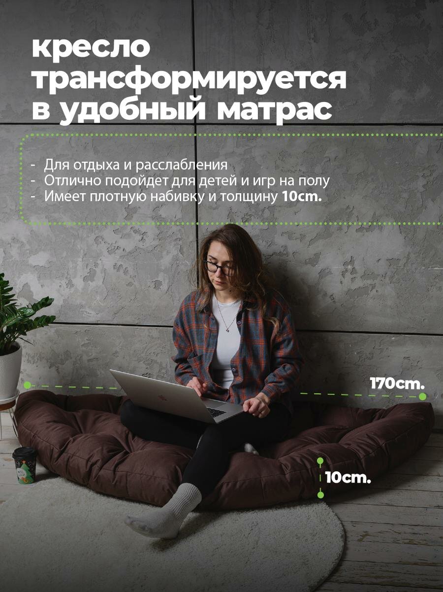 Кресло садовое бескаркасное,кресло футон, кресло мешок, кресло трансформер для дома, на балкон, для дачи водоотталкивающий корич