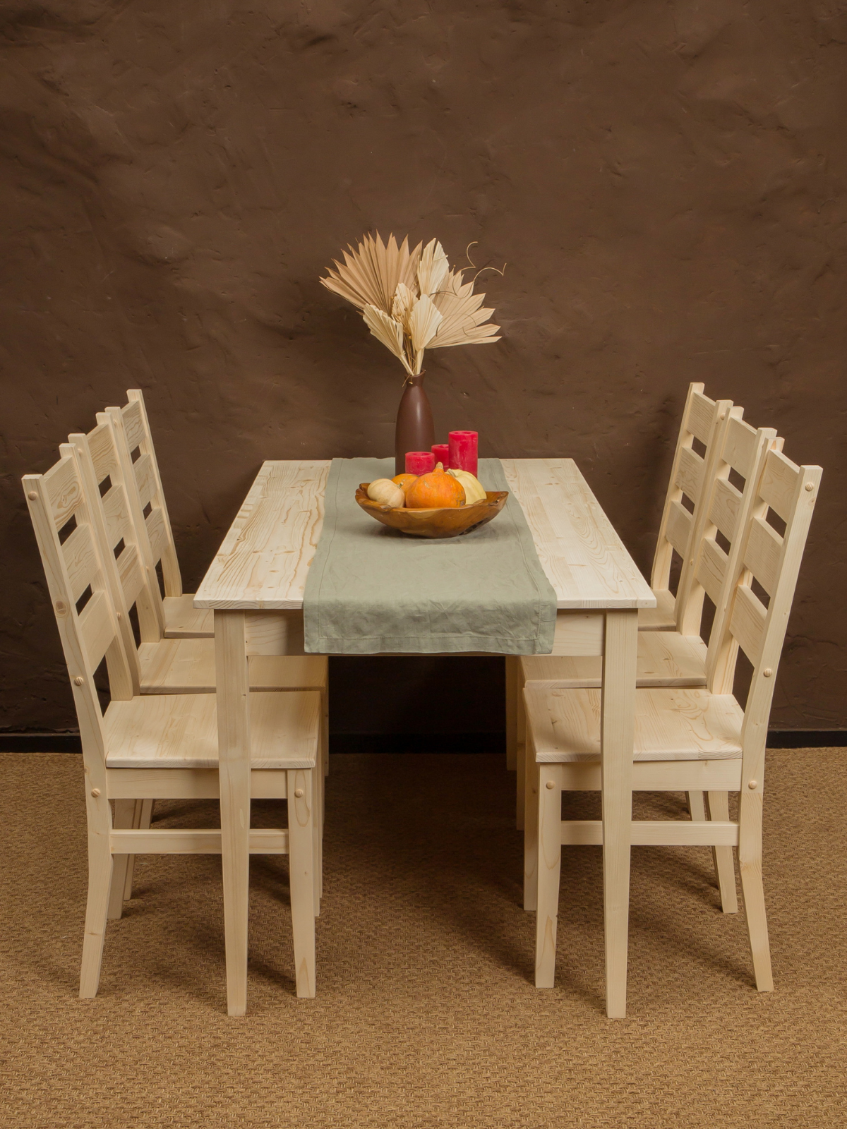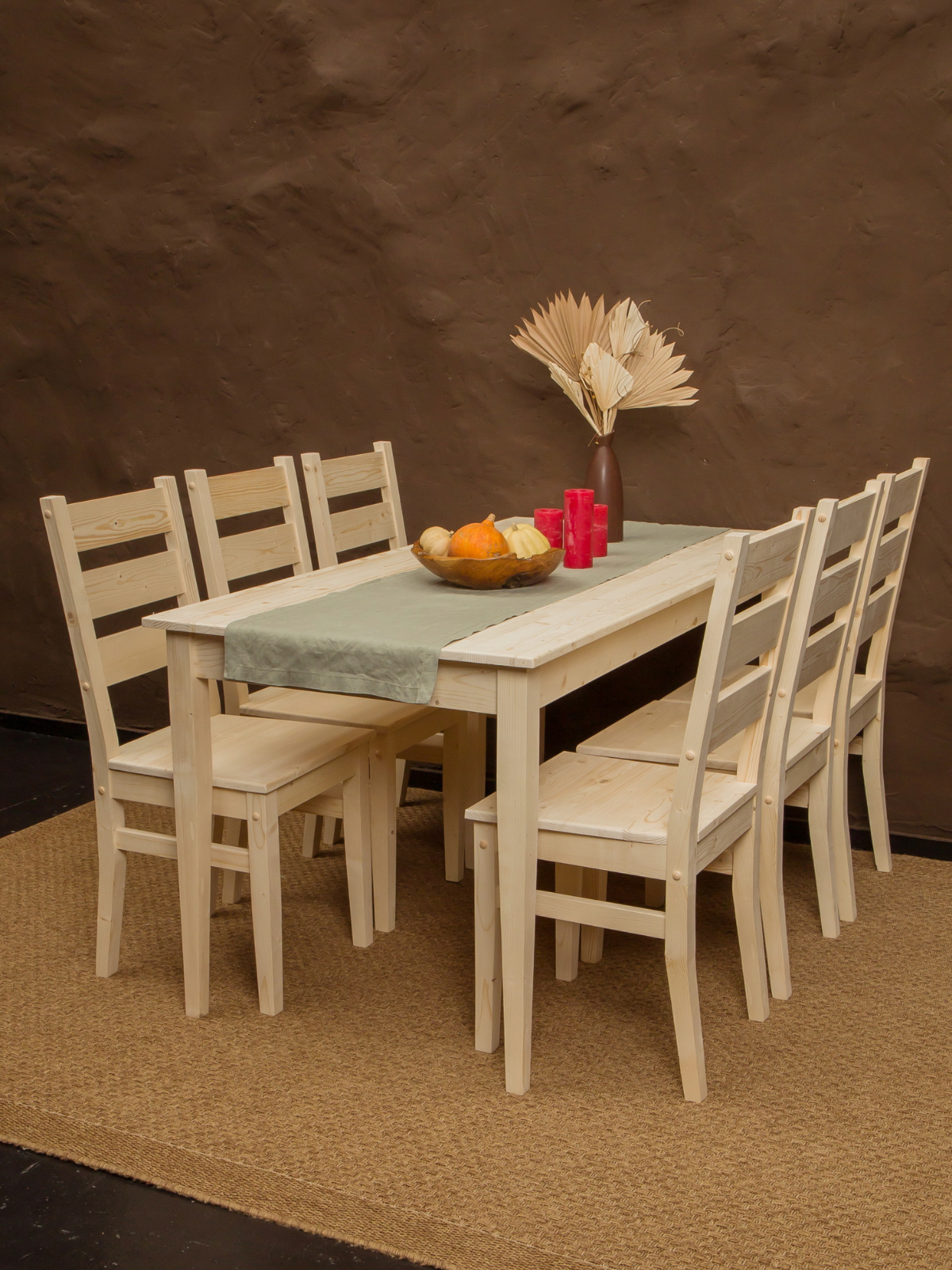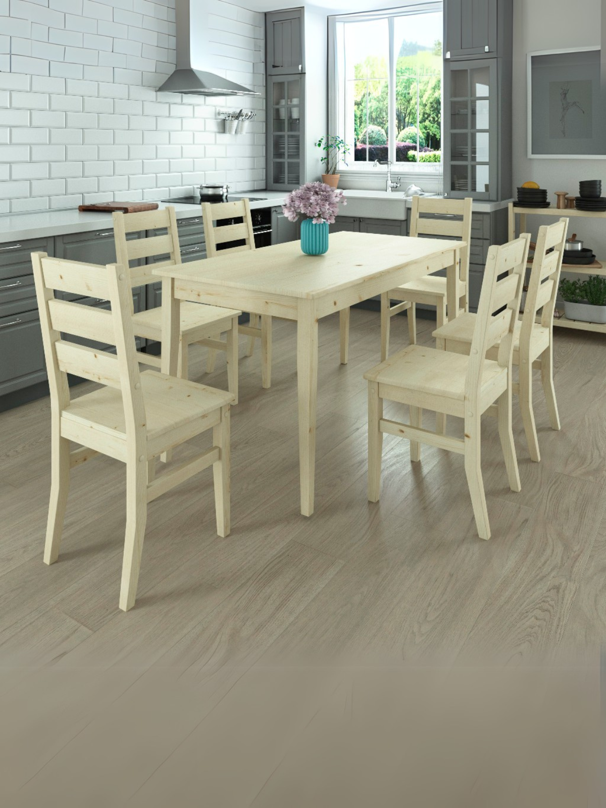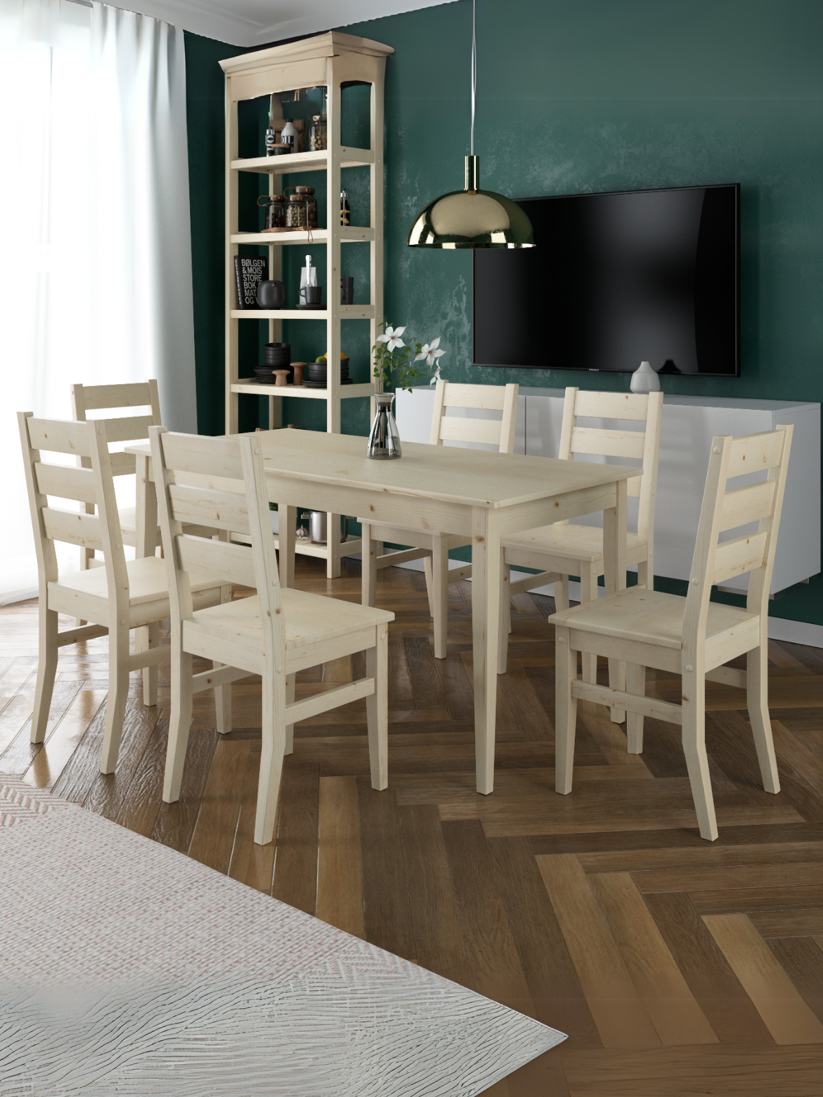 Комплект обеденной мебели из дерева (стол 1,5м + 6 стульев) КМО-04 (без покраски)