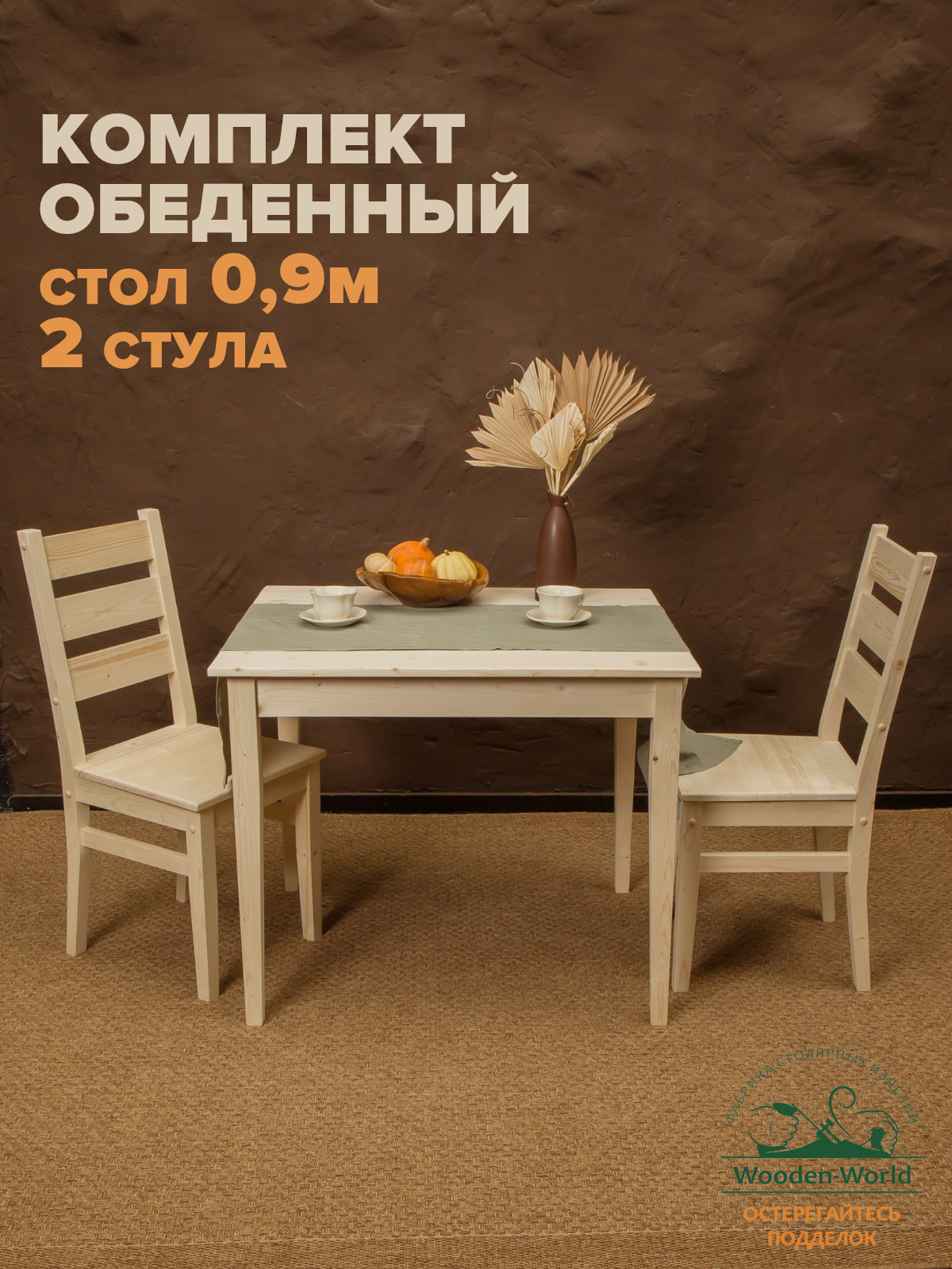 Купить Стол кухонный со стульями (стол 0,9м + 2 стула) обеденная группа для кухни из массива дерева