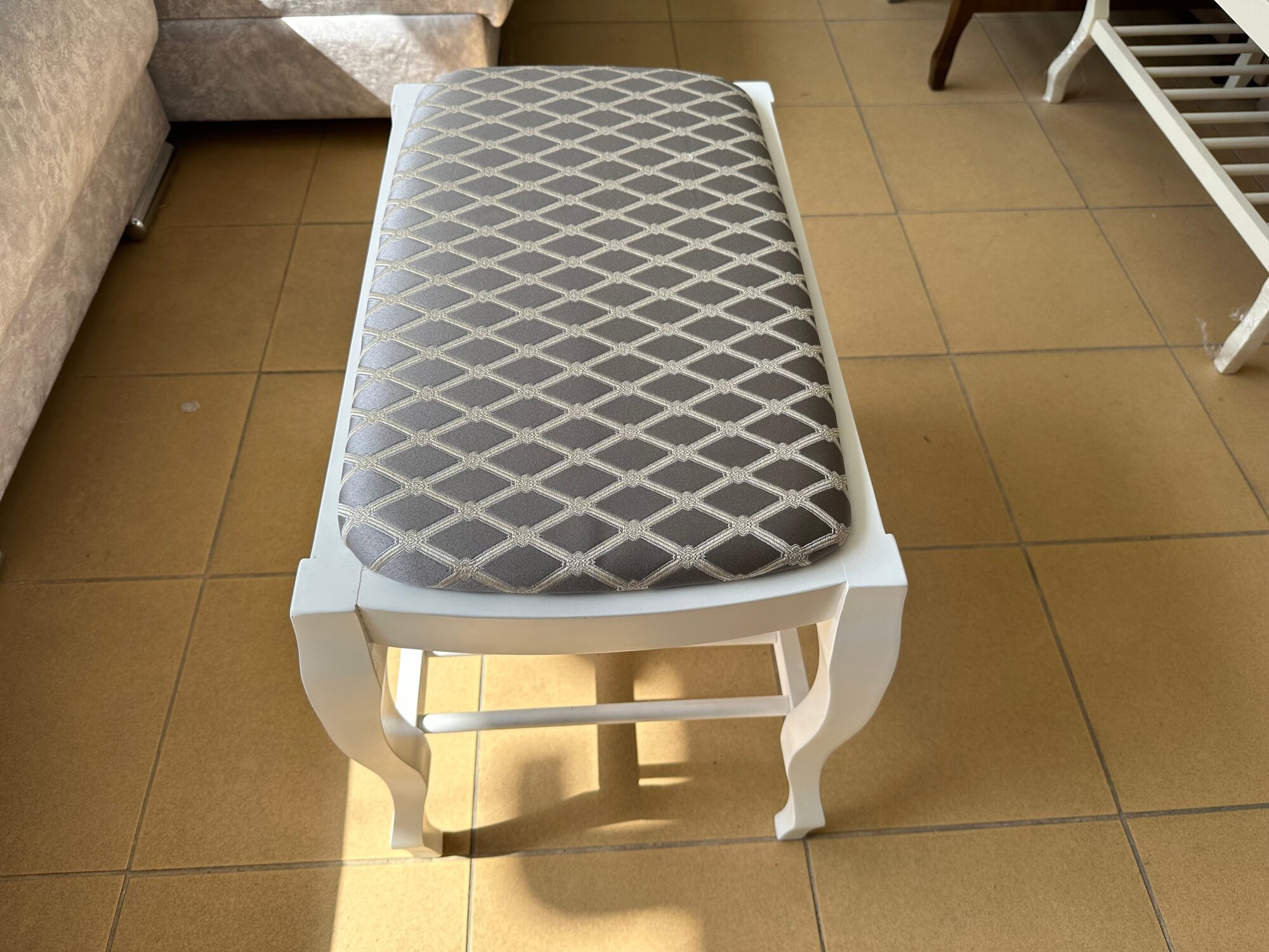 Банкетка для обуви "Классик 16" белая, жаккард серый, обивка -текстиль, длина -67 см