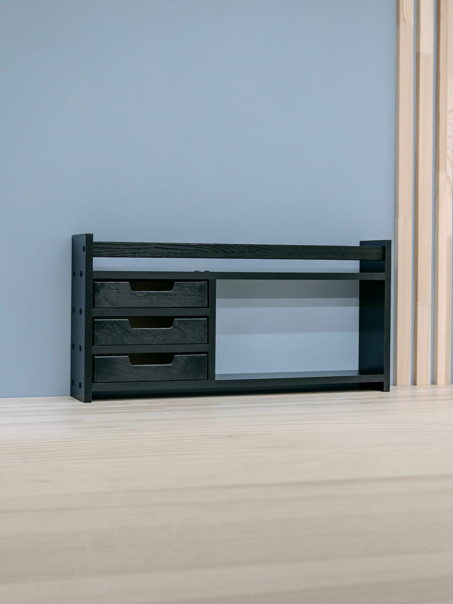 Полка настольная деревянная узкая, 3 ящика