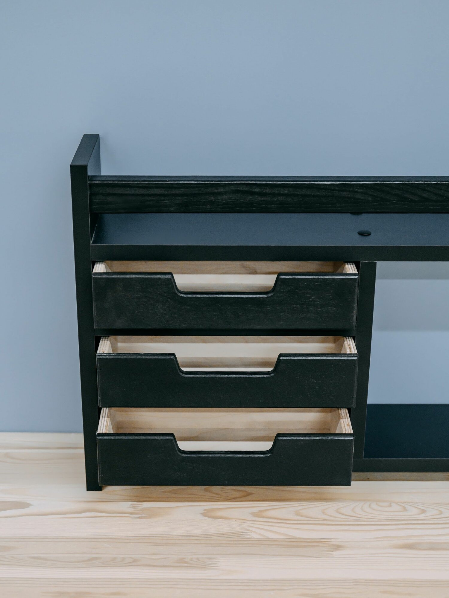 Купить Настольная полка Mandarina.decor, 3 ящика, черная, ЛДСП, 70x12x34 см