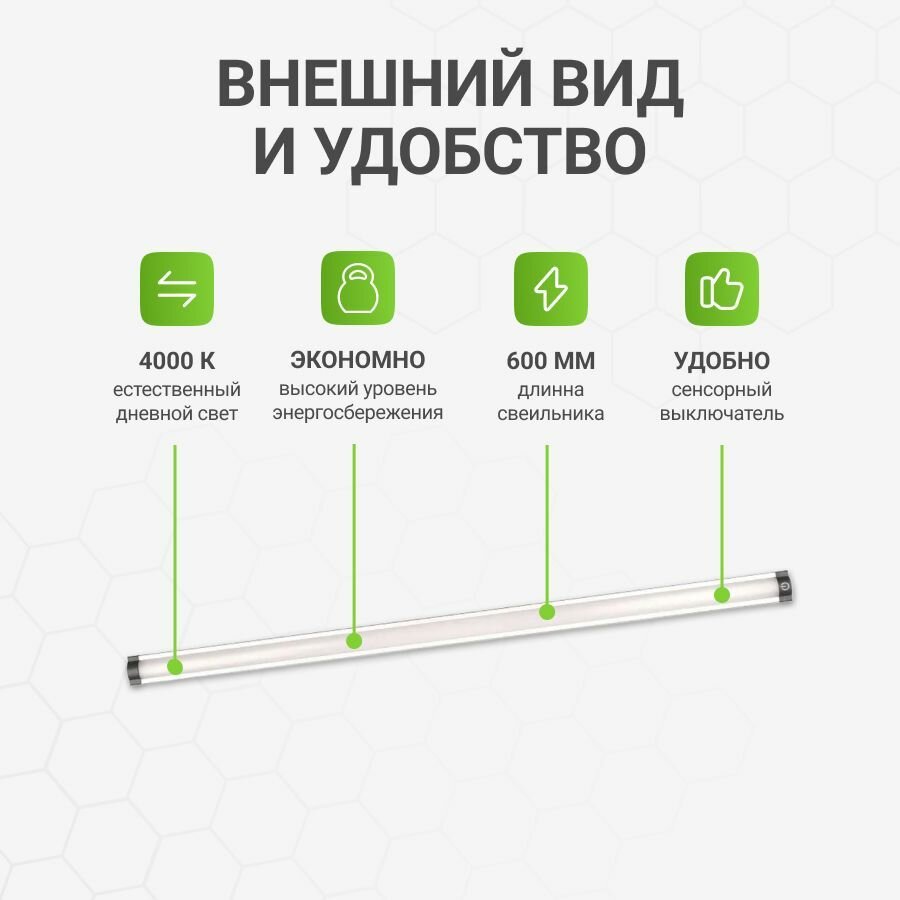 Мебельный светодиодный светильник с сенсорным выкл, 4000k, 12V, L600мм, алюминий интересное: