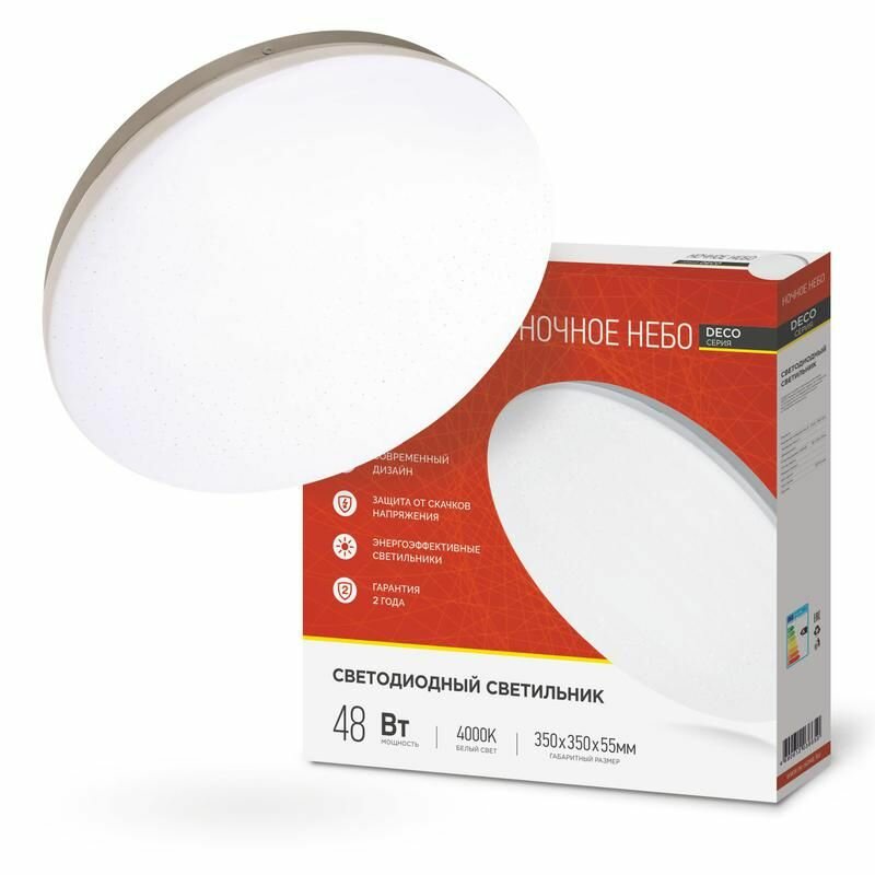 СохранитьСветильник светодиодный DECO ночное небо 48Вт 4000К 4320лм 230В 380х55мм IN HOME 4690612038650 интересное: