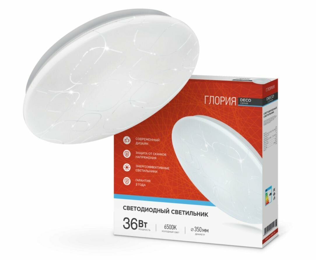 Светильник светодиод DECO 36Вт 6500К 2340Лм 350мм глория IN HOME