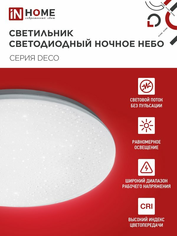 Светильник светодиодный DECO ночное небо 48Вт 4000К 4320лм 230В 380х55мм IN HOME 4690612038650