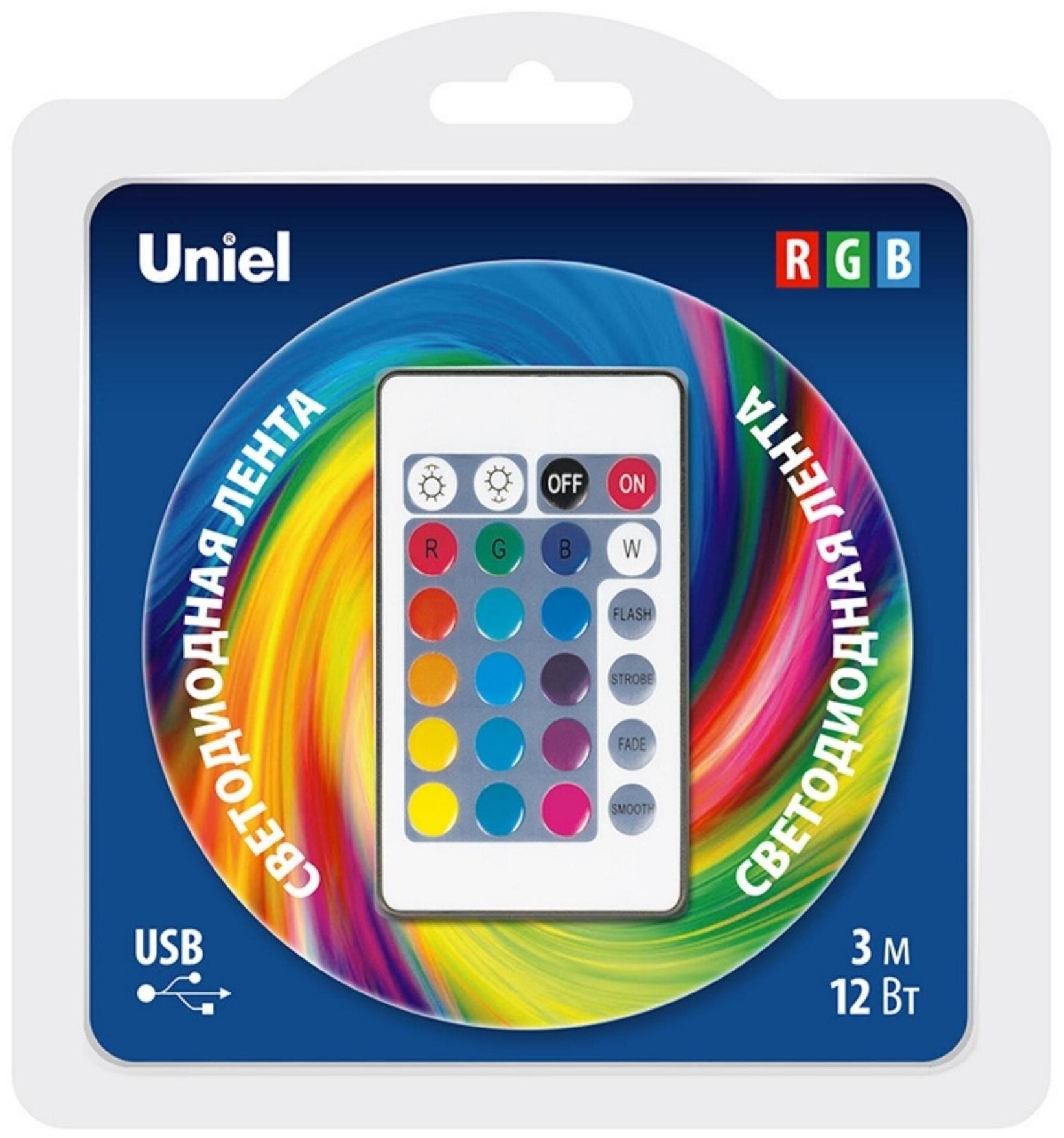 | Дополнительная информация | Светодиодная лента Uniel ULS-U12 RUA02C24 универсальная 4 Вт/м 5 В 1 мм IP20 3 м изменение цвета RGB |