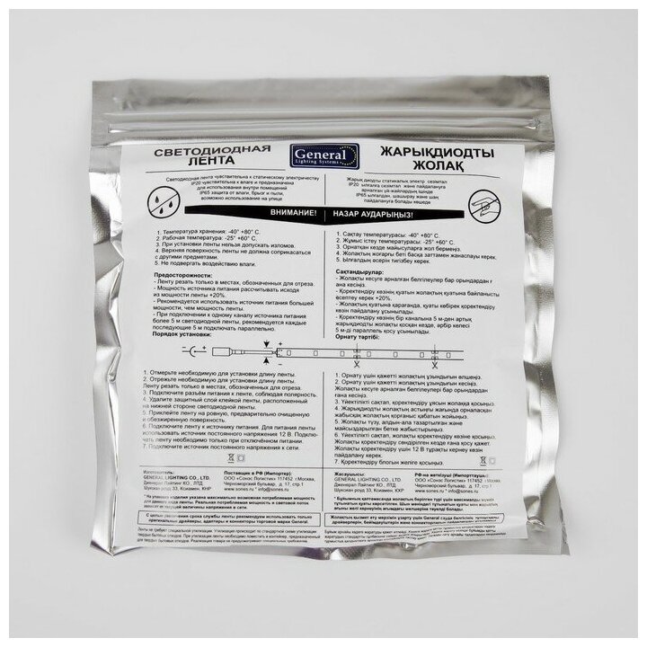 | Комплектация | Пять метров светодиодной ленты в антистатическом пакете |
