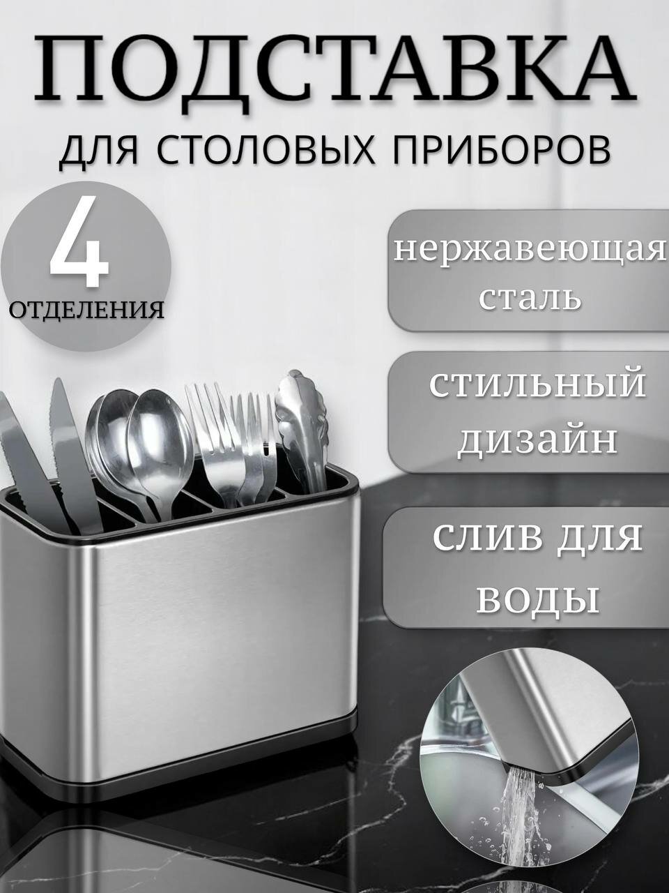 Подставка для столовых приборов нержавеющей стали / Кухонный органайзер / Подставка для ложек, вилок и ножей интересное: