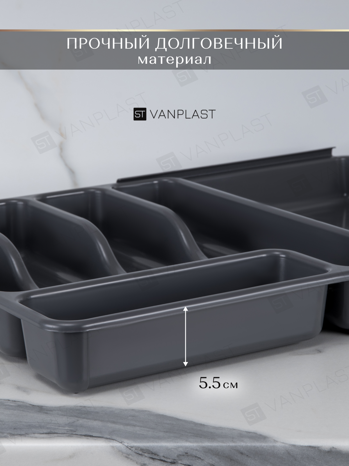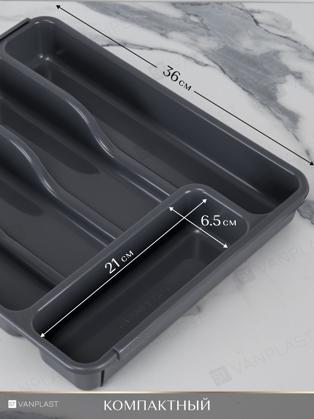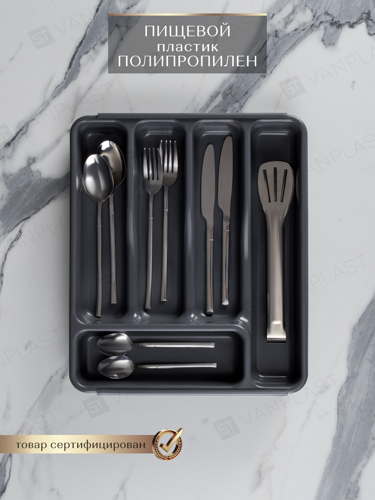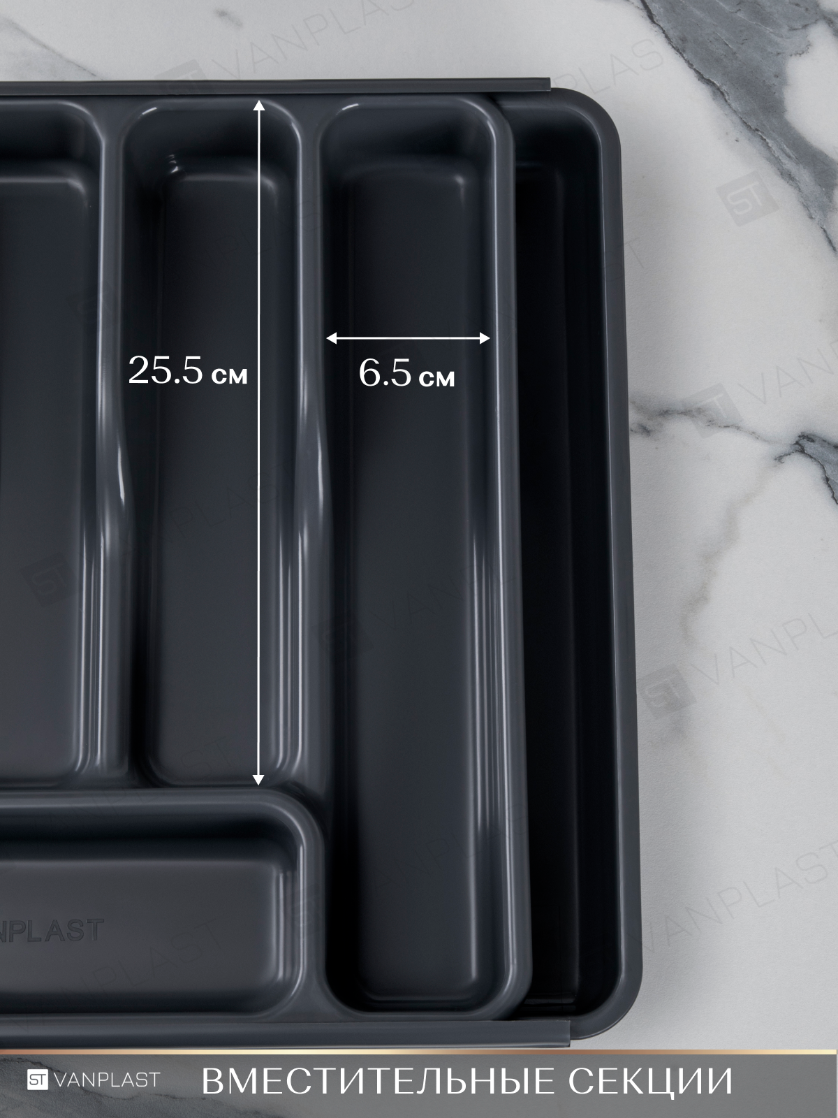 Раздвижной лоток для столовых приборов ST VANPLAST 36х30,3-52,5х5,5 см, серый интересное: