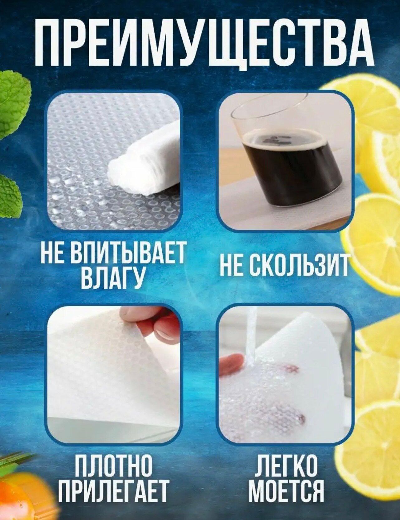 | Дополнительная информация | не скользящие; универсальные коврики для полок; |
