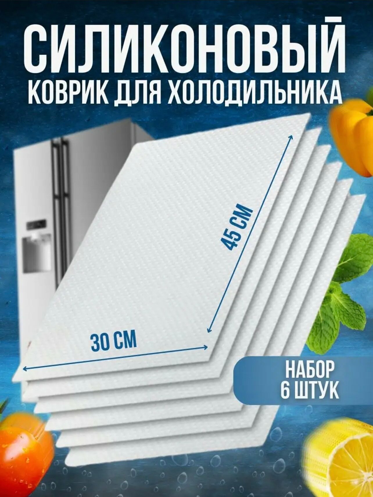 Прозрачные силиконовые коврики для кухонных полок, ящиков, холодильника 45х30 см, 6 штук в упаковке