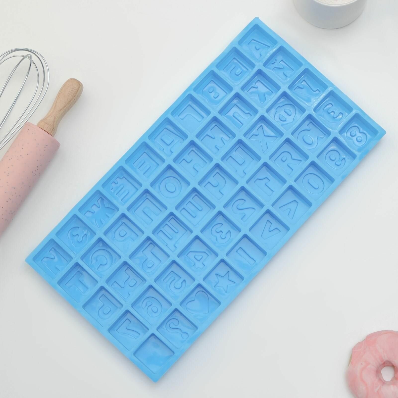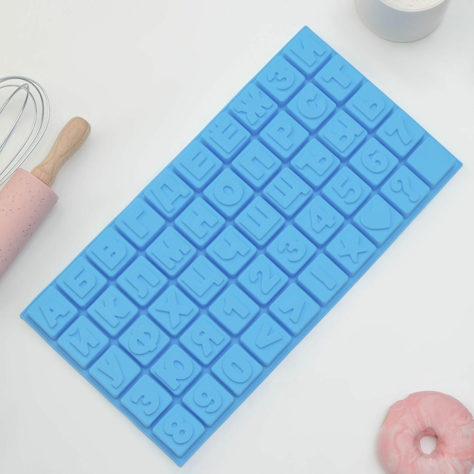 Купить Форма силиконовая для выпечки Алфавит и цифры, 50 ячеек, 35x18,5x2 см