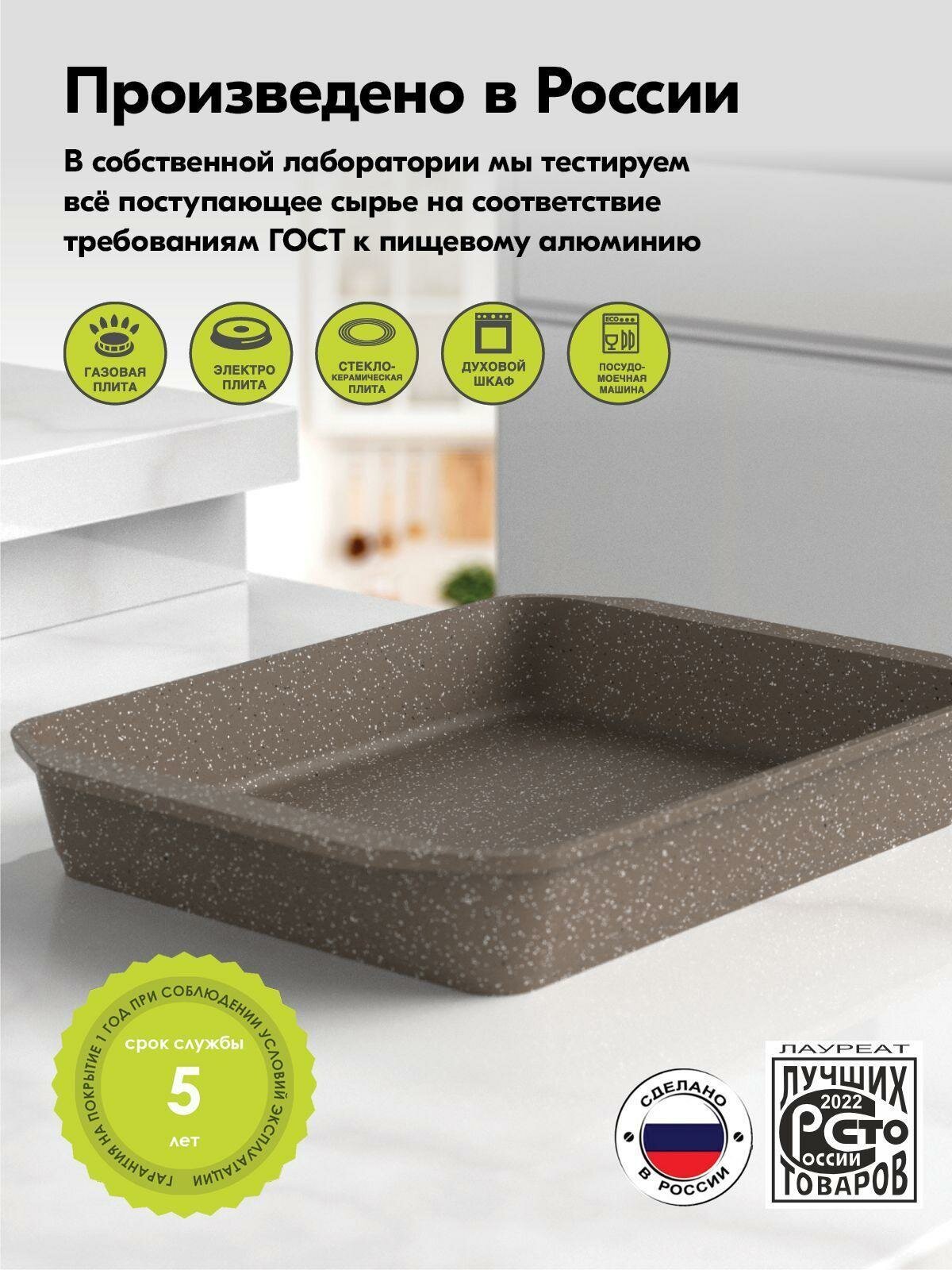 Форма для запекания алюминий, 33х22х5.5 см, антипригарное покрытие, прямоугольная, Мечта, Гранит star, 93803