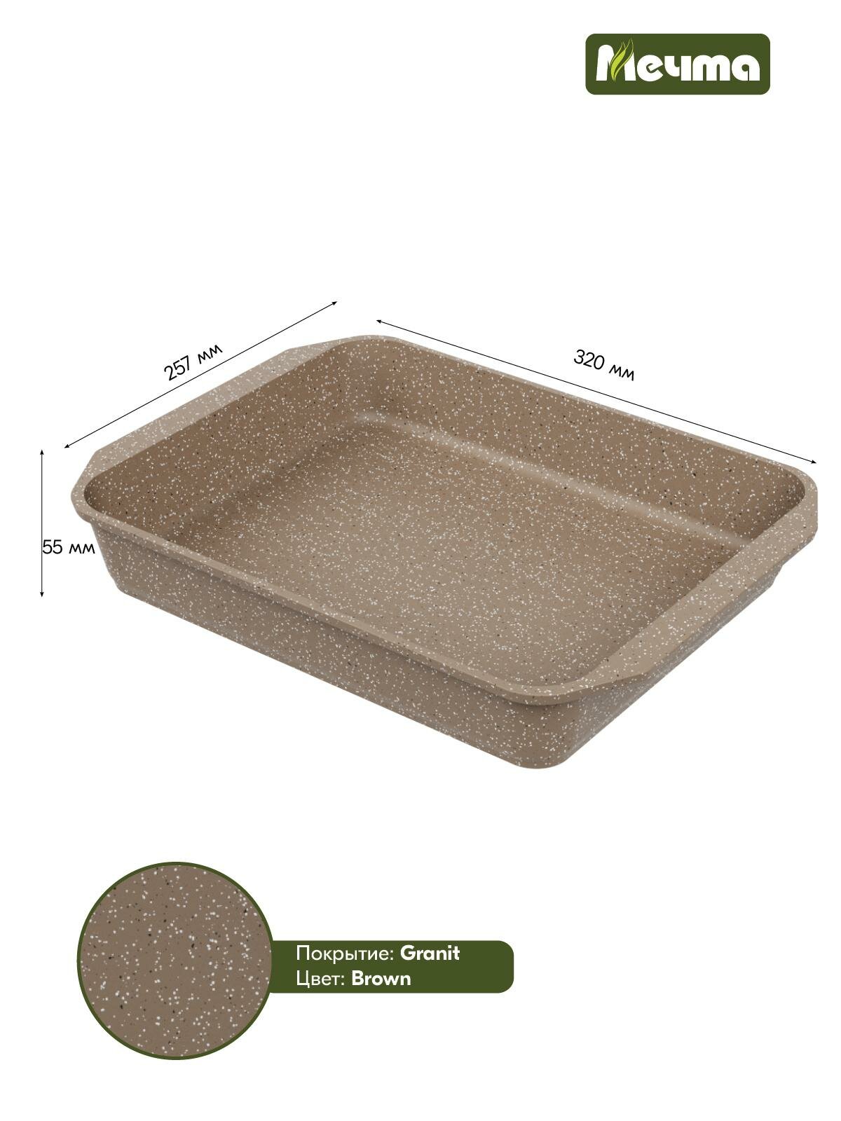 Противень Мечта Посуда мечта Гранит brown, 33*22 см