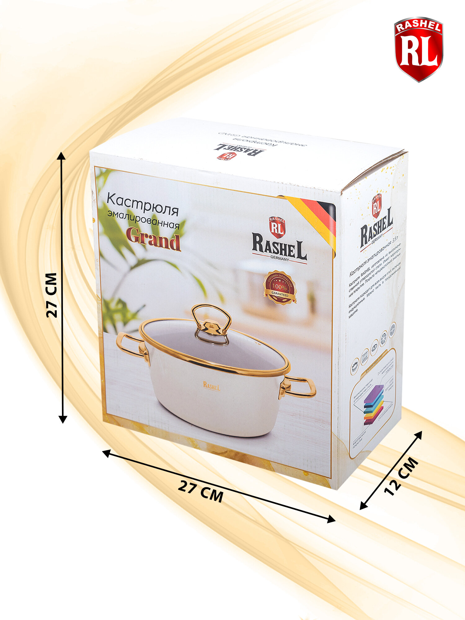 Кастрюля 3,5л Rashel Grand R0922 эмаль, ст.крышка, ручка золото; кремовый, индукция