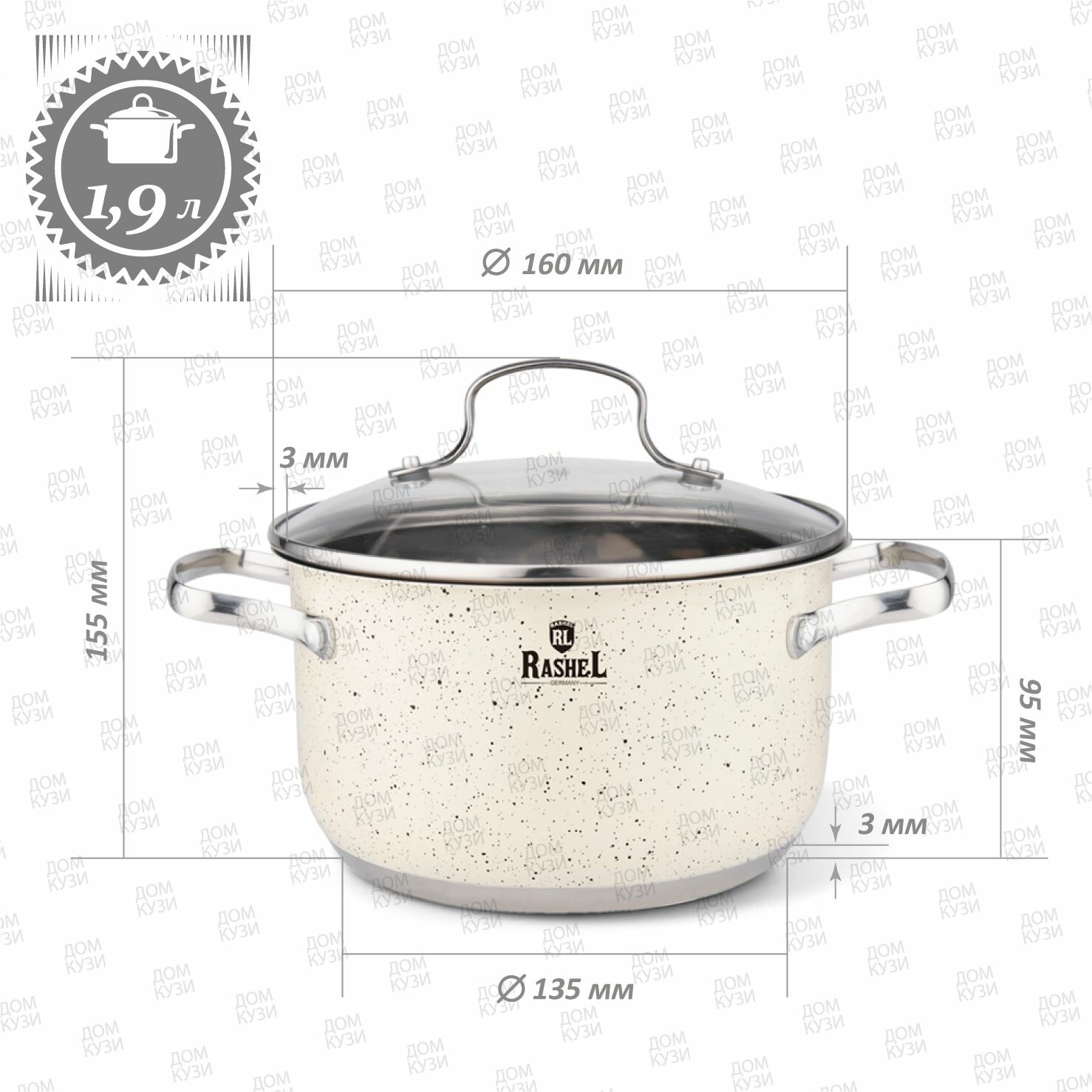 Кастрюля RASHEL R-19т со стеклянной крышкой 1.9л, нержавеющая сталь, 16х9.5 см