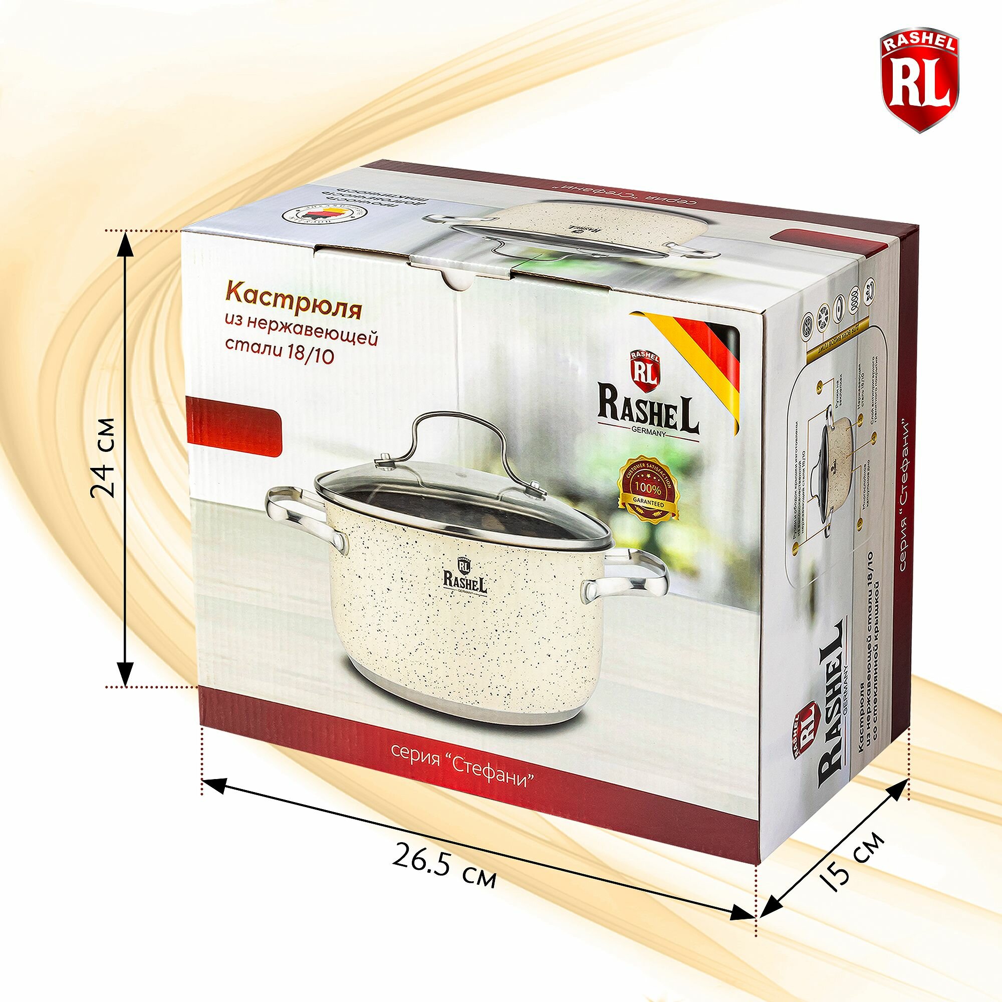 Купить Кастрюля RasheL Стефани, нержавеющая сталь, 3,6л, белое антипригарное покрытие