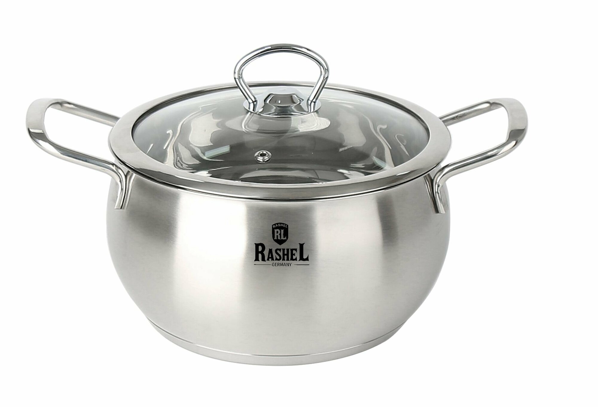 Кастрюля RasheL из нержавеющей стали с стеклянной крышкой с паровыпуском 2,6 л Мария