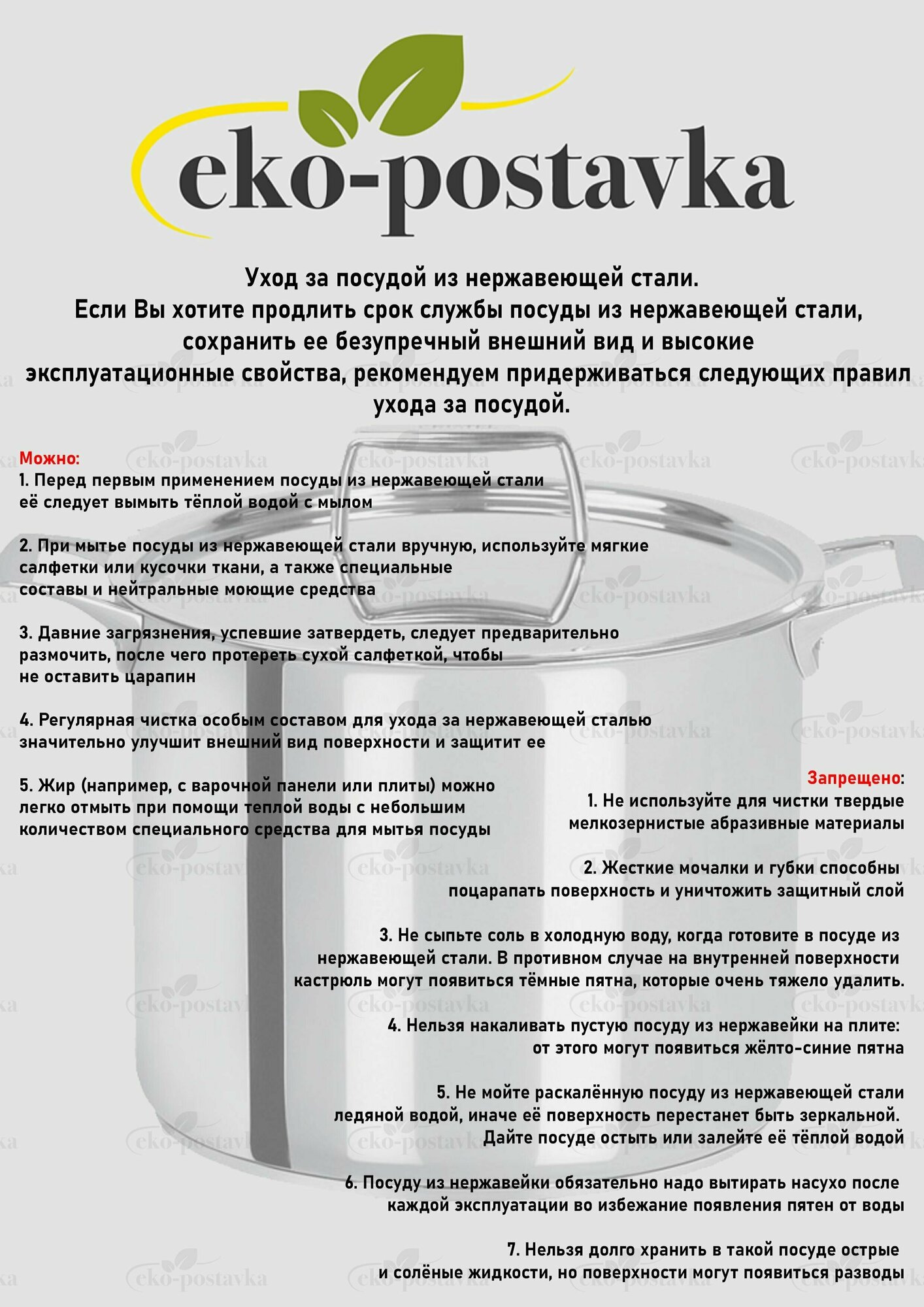 | Дополнительная информация | Уважаемы покупатели! Просьба обратить Ваше внимание, что объемы посуды(кастрюли, наборы кастрюль, жаровни) в описании и в карточке товара указывается производителем заводской/общий, который рассчитывается из внешних размеров. Рабочий/полезный объем меньше указанного в среднем на 10%. |