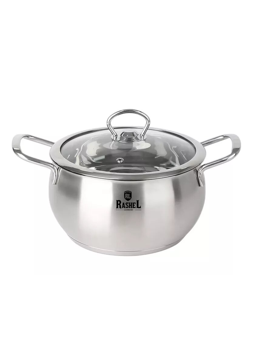 Кастрюля RasheL из нержавеющей стали с стеклянной крышкой с паровыпуском 2,6 л Мария
