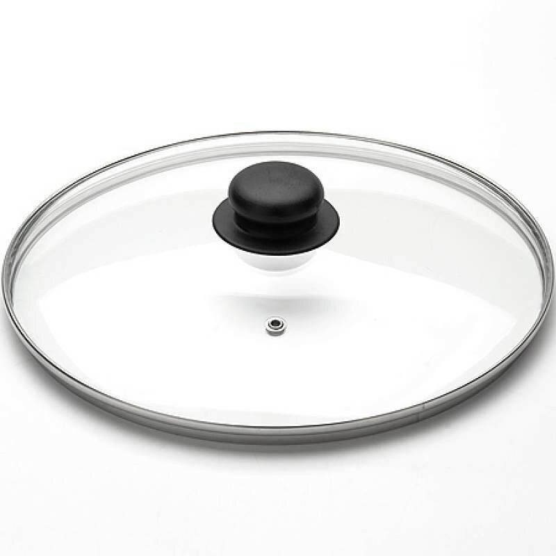 Крышка стеклянная TimA с ручкой (полипропилен) с металлическим ободком и пароотводом, д.28 см