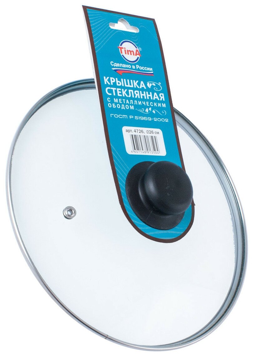Купить Крышка стеклянная TimA с ручкой (полипропилен) с металлическим ободком и пароотводом, д.30 см , производство России