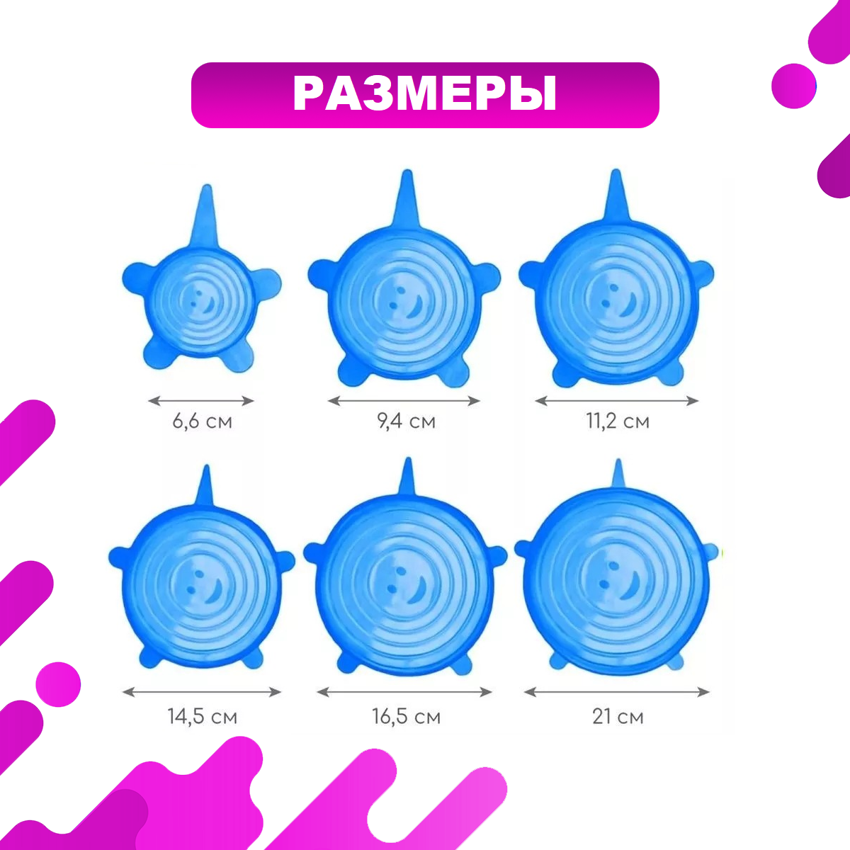 Силиконовые растягивающиеся крышки для посуды, набор – 6 шт