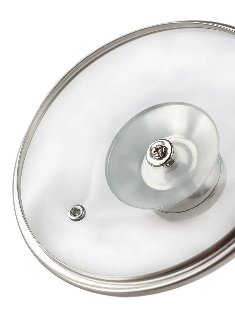 Крышка стеклянная TimA с металлическим ободком и круглой ручкой (нержавеющая сталь), пароотвод, диаметр 20 см