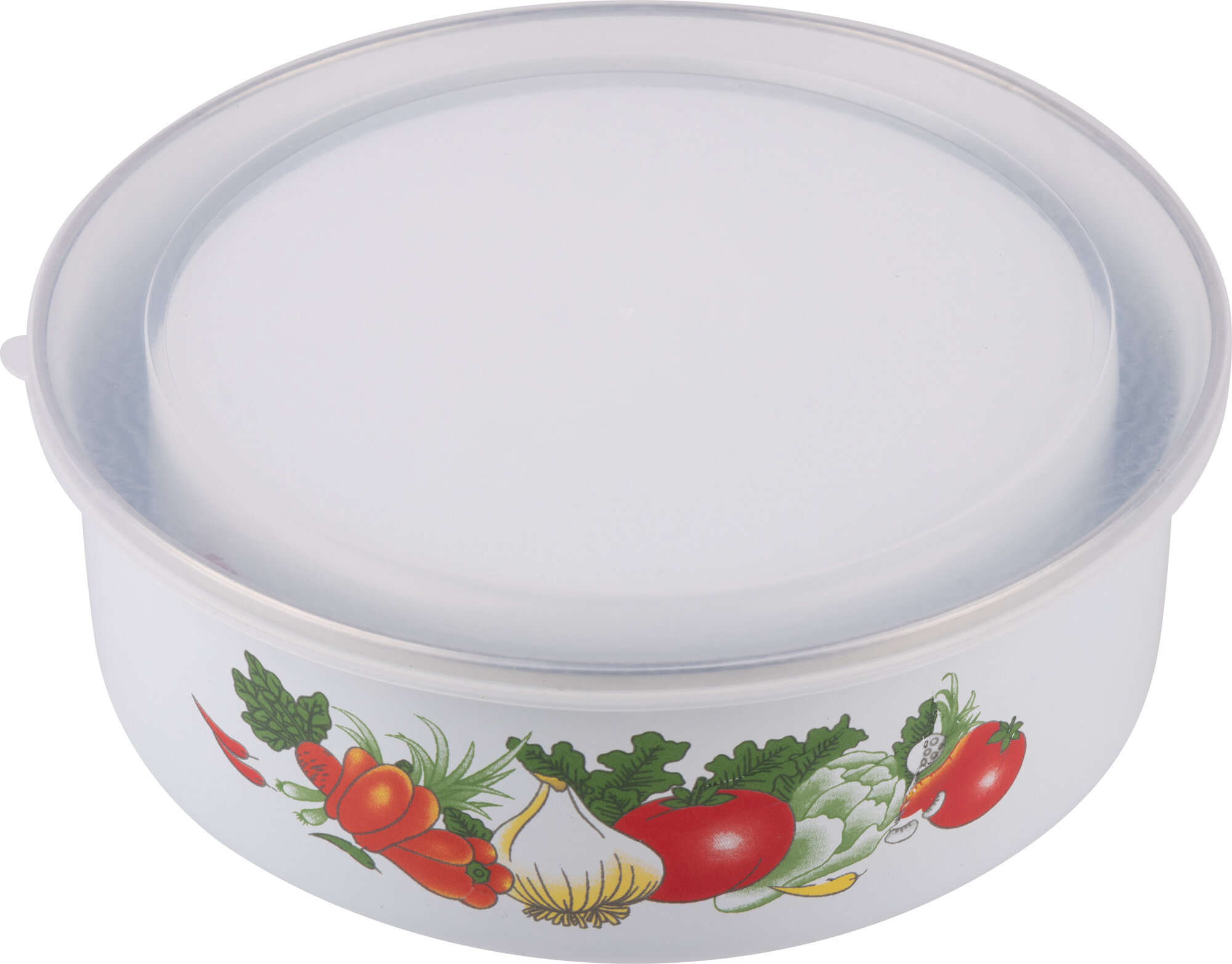 Набор из 5 эмалированных мисок с крышками, FAMILIA, 195/340/600/850/1250 мл, цвет: белый с дизайном