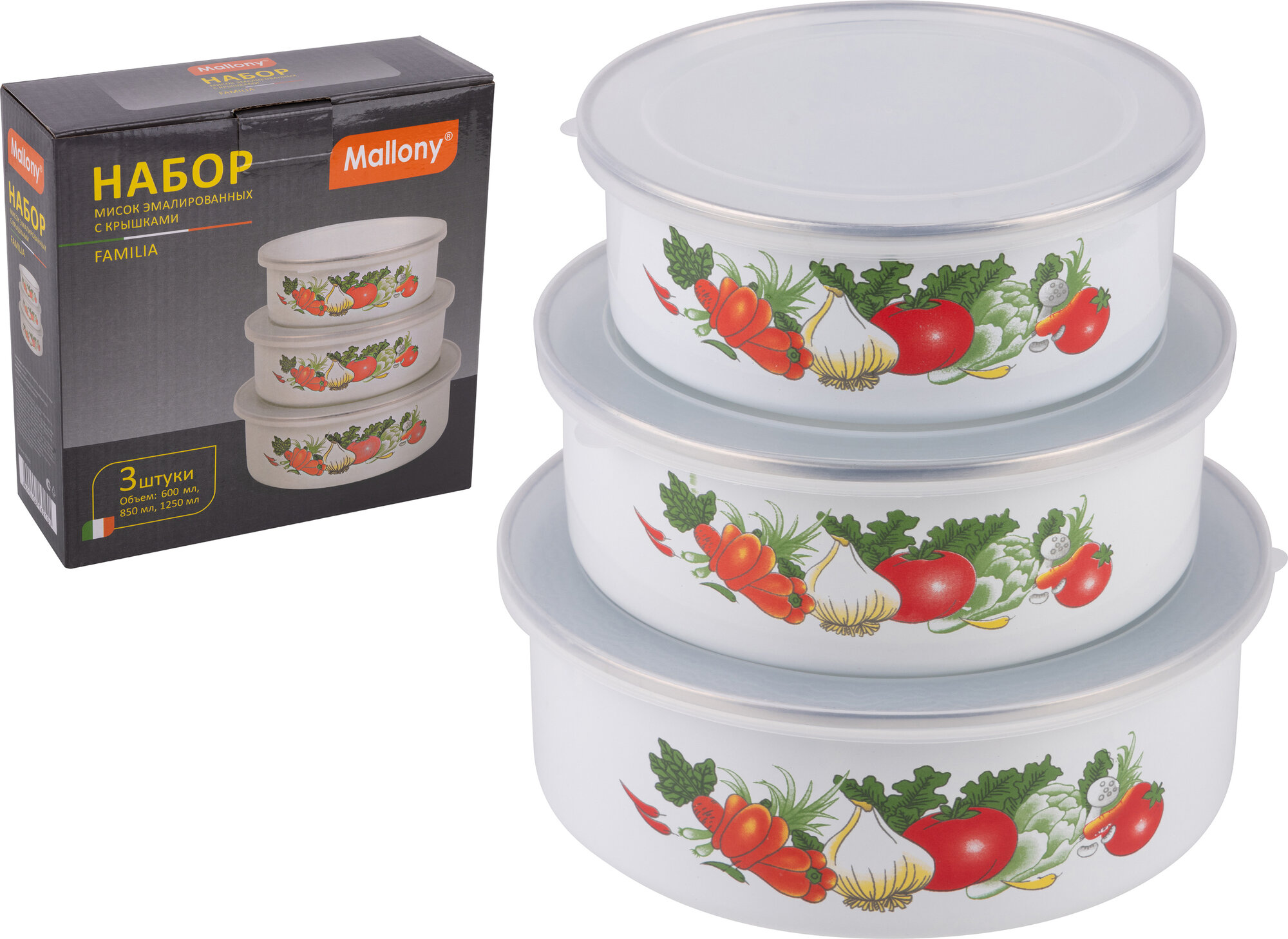 Купить Набор мисок эмалированных с крышками Mallony Familia, 3 шт: 600, 850, 1250 мл