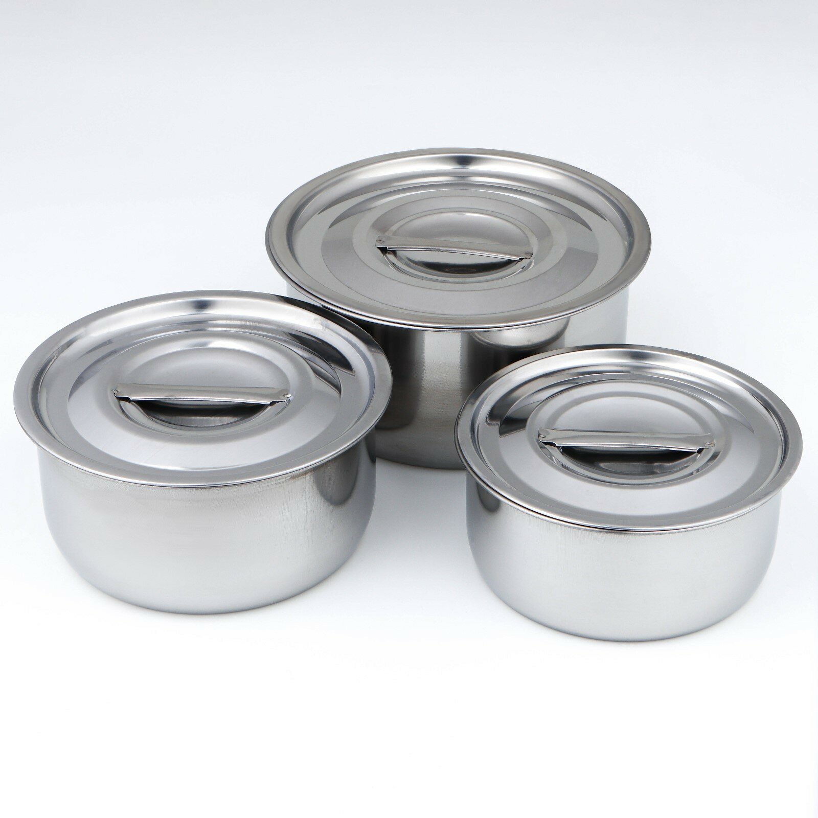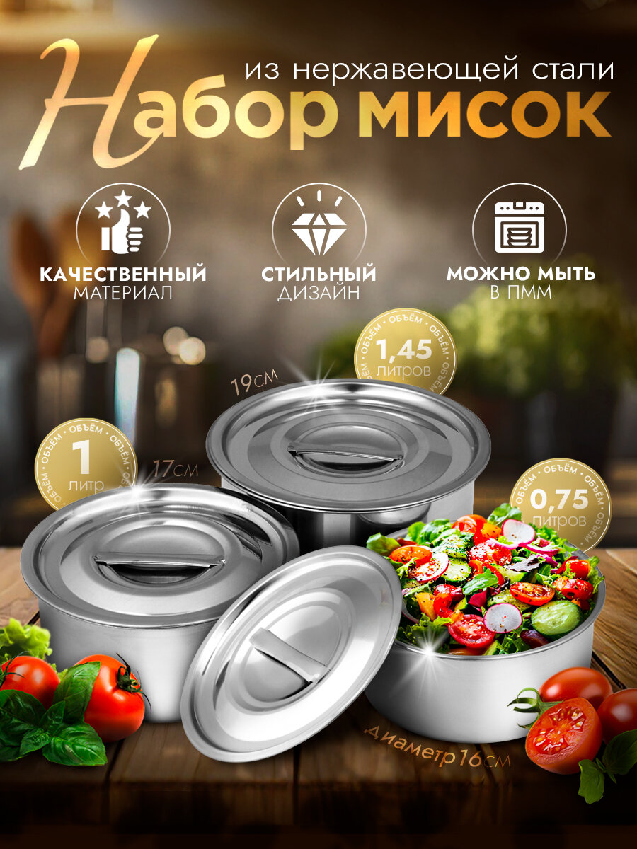 Набор посуды из нержавеющей стали с крышками 3 шт: 0,75 л, 1 л, 1,45 л, d=15 см, d=16,5 см, 18,5 см интересное: