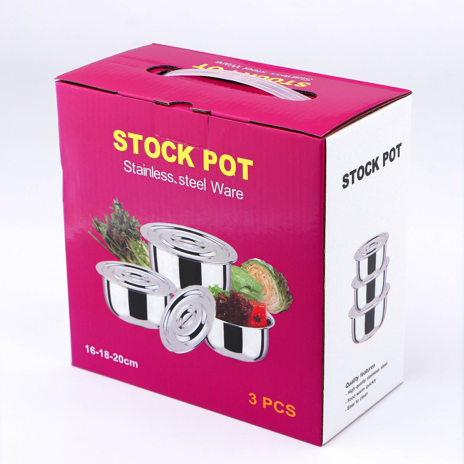 Купить Набор посуды из нержавеющей стали с крышками 3 шт: 0,75 л, 1 л, 1,45 л, d=15 см, d=16,5 см, 18,5 см