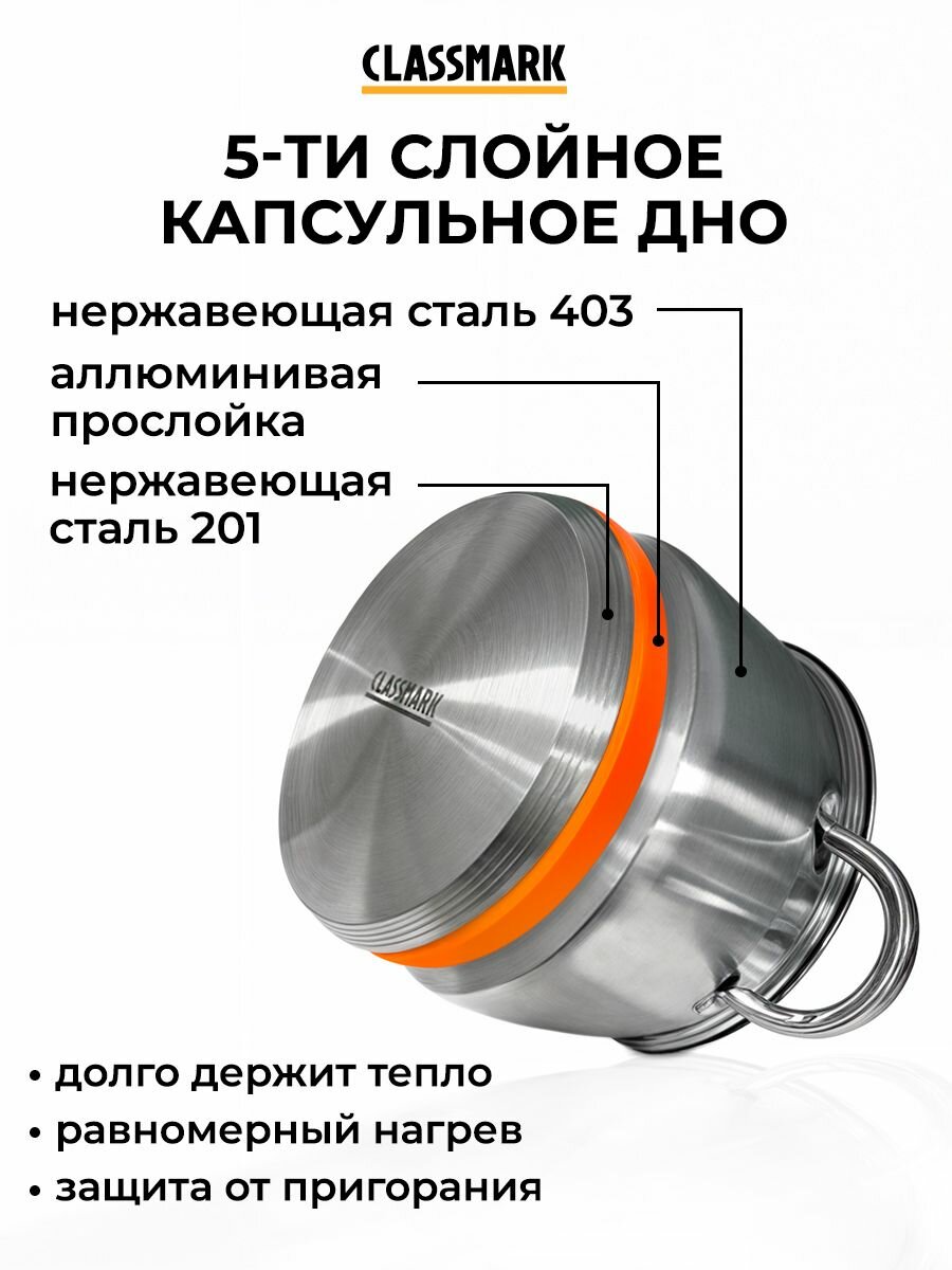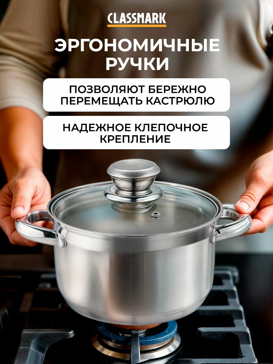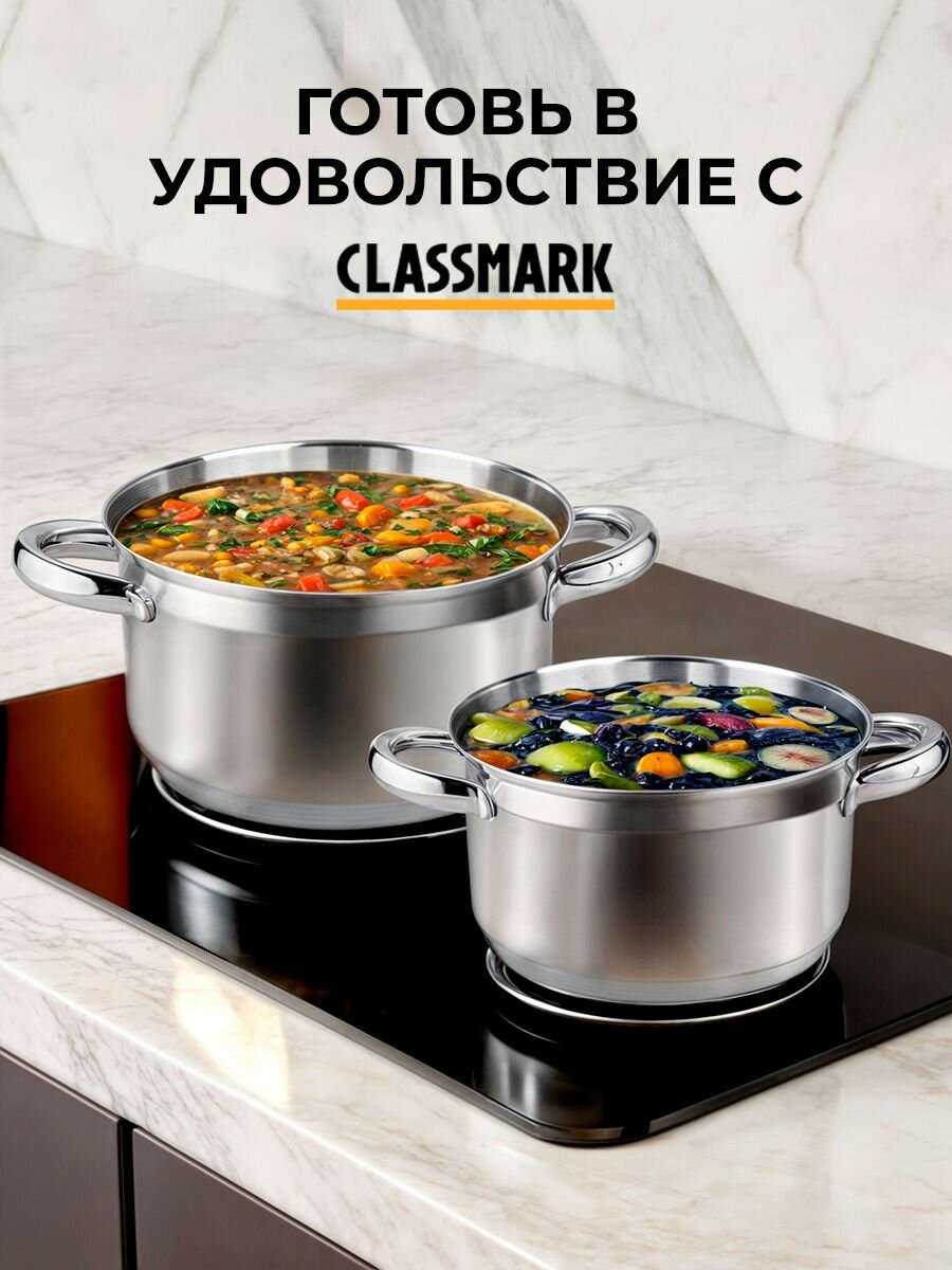 Набор кастрюль из нержавеющей стали Classmark - 8 предметов, для всех видов плит, включая индукционные, с крышками из жаропрочного стекла, для приготовления посуда интересное: