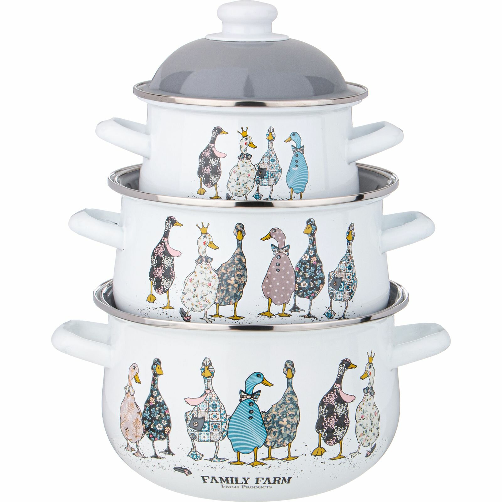 Купить Набор кастрюль Agness "Family Farm", эмалированные, для всех видов плит, набор 3 шт. (1.5 л, 2.8 л и 3.6 л), с крышкой