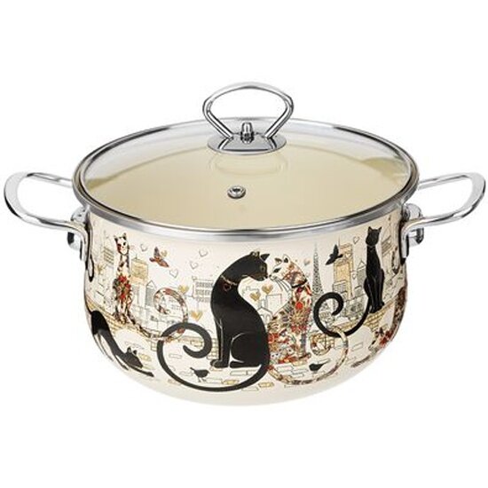 Набор кастрюль эмалированных: 2 штуки по 2 л и 2,8 л Agness "Парижские Коты" для всех видов плит 18 х 11 см, 20 х 12 см